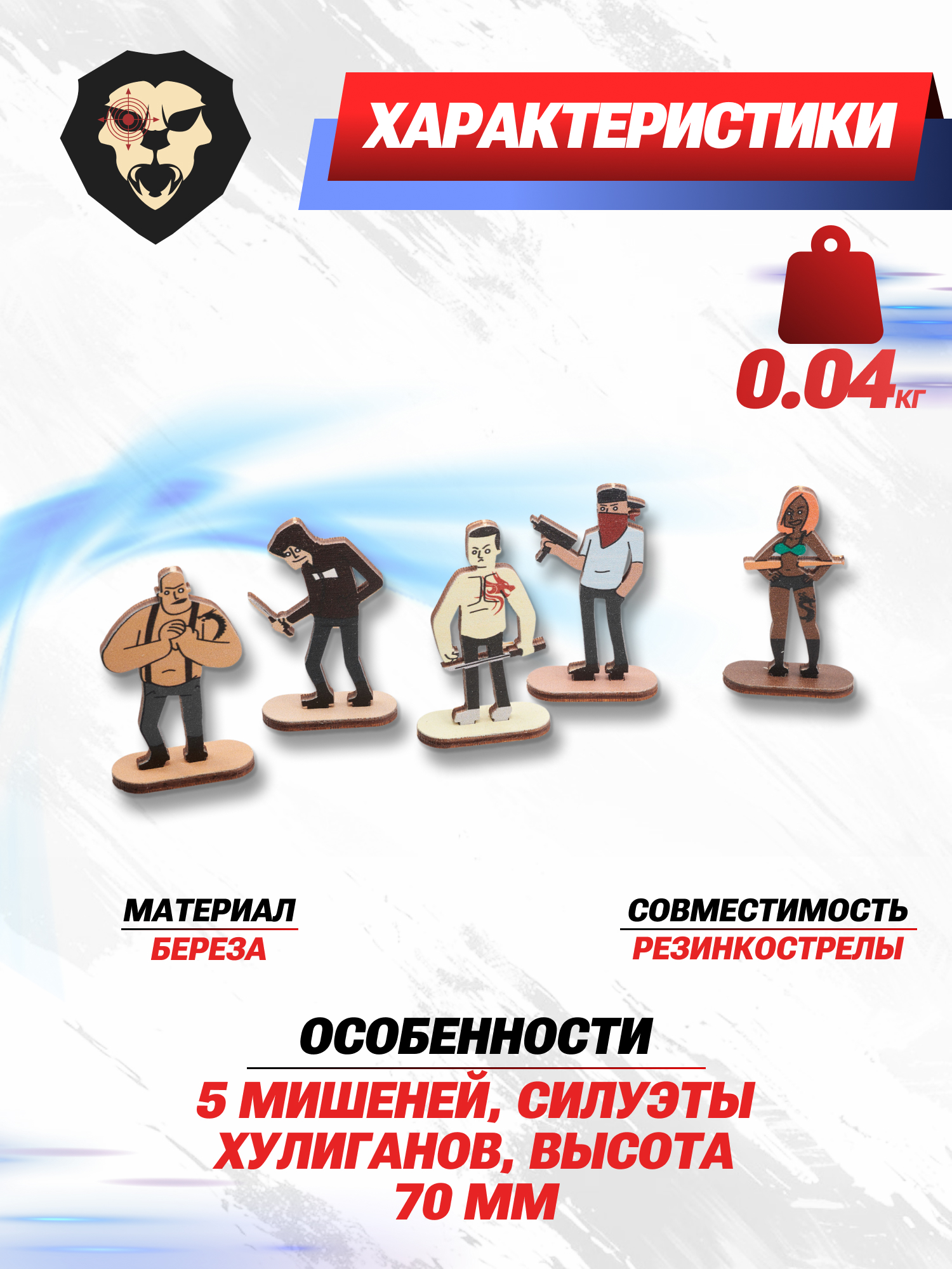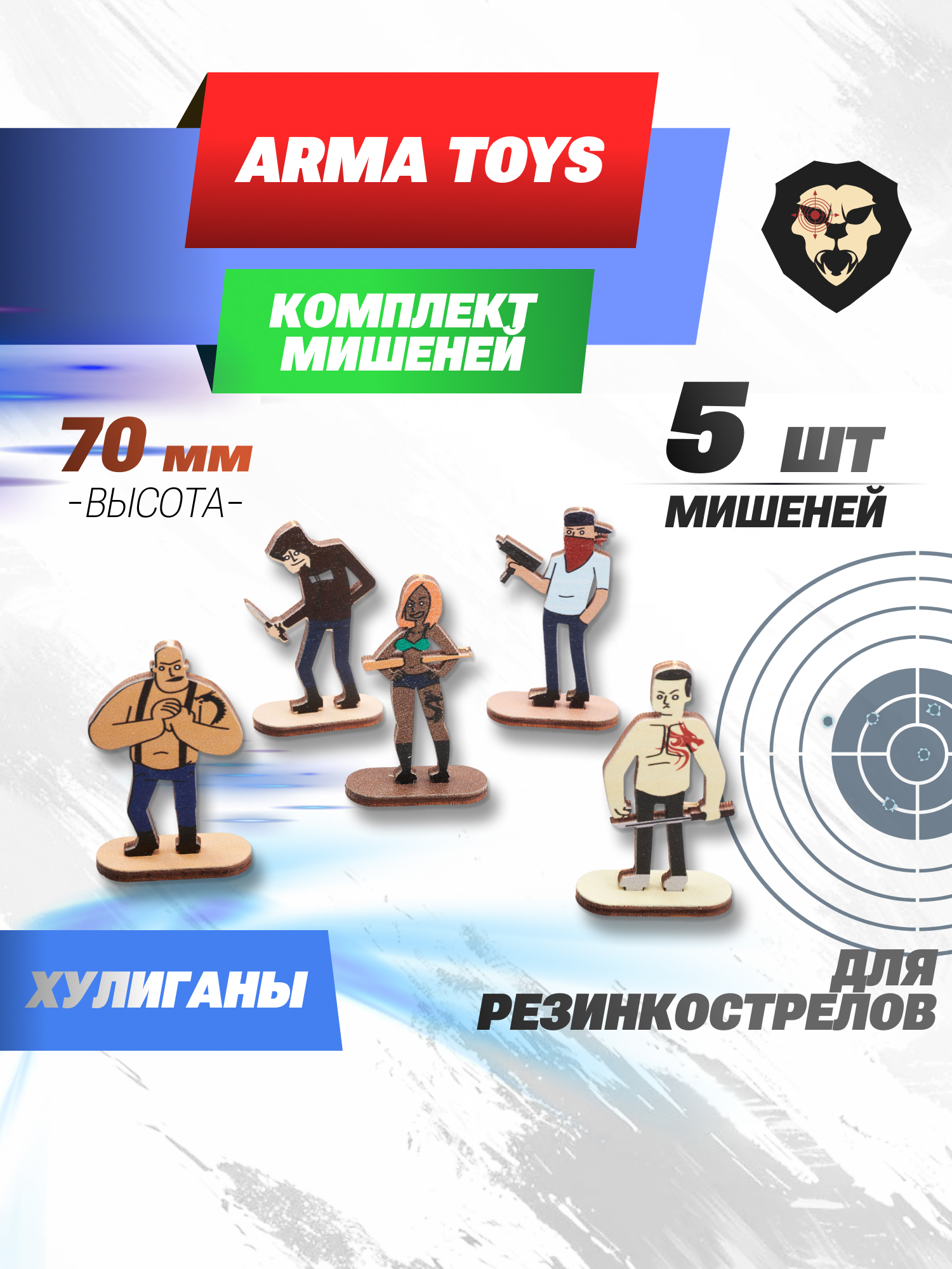 | Особенности | 5 мишеней, силуэты хулиганов, высота 70 мм |