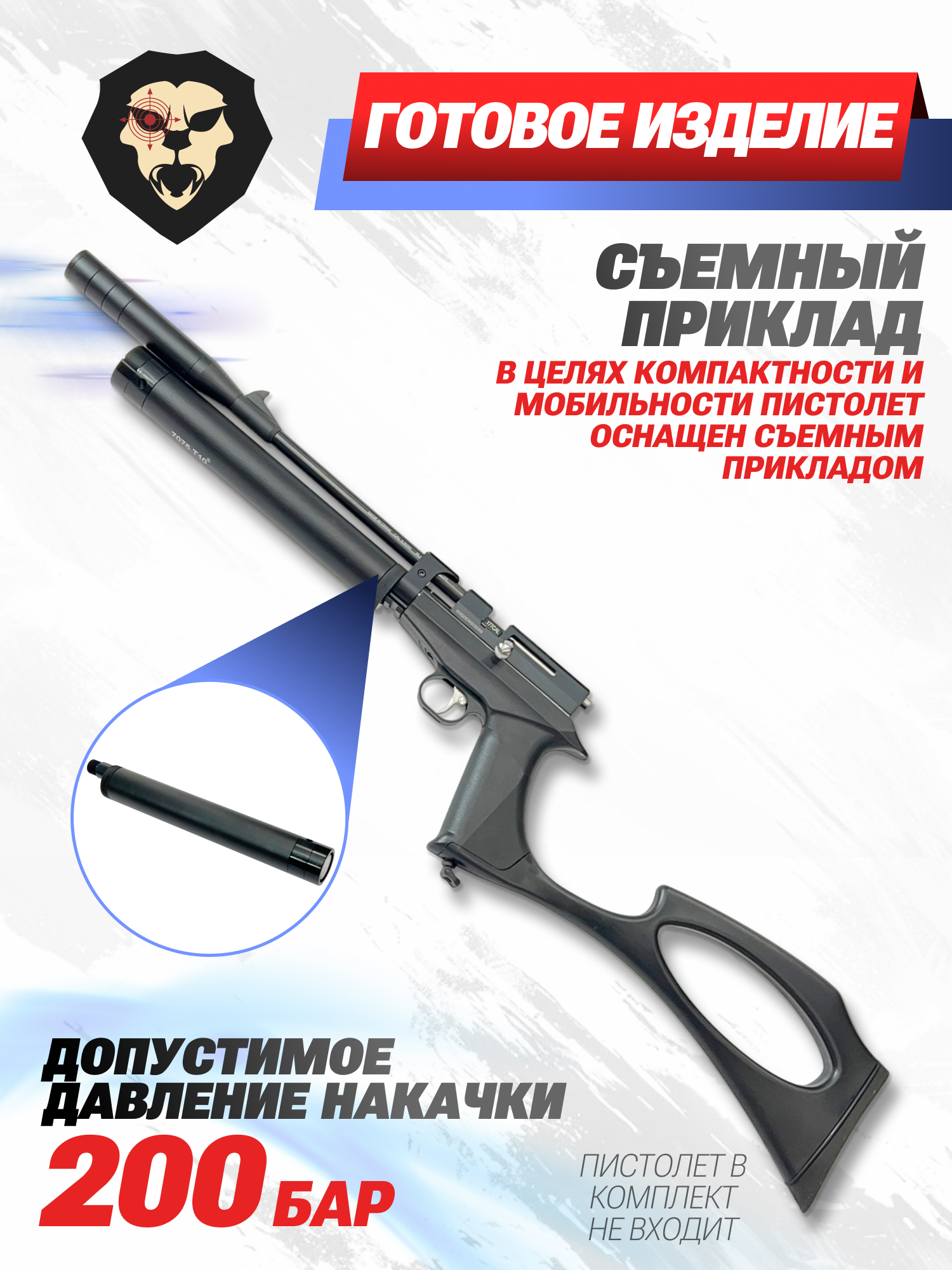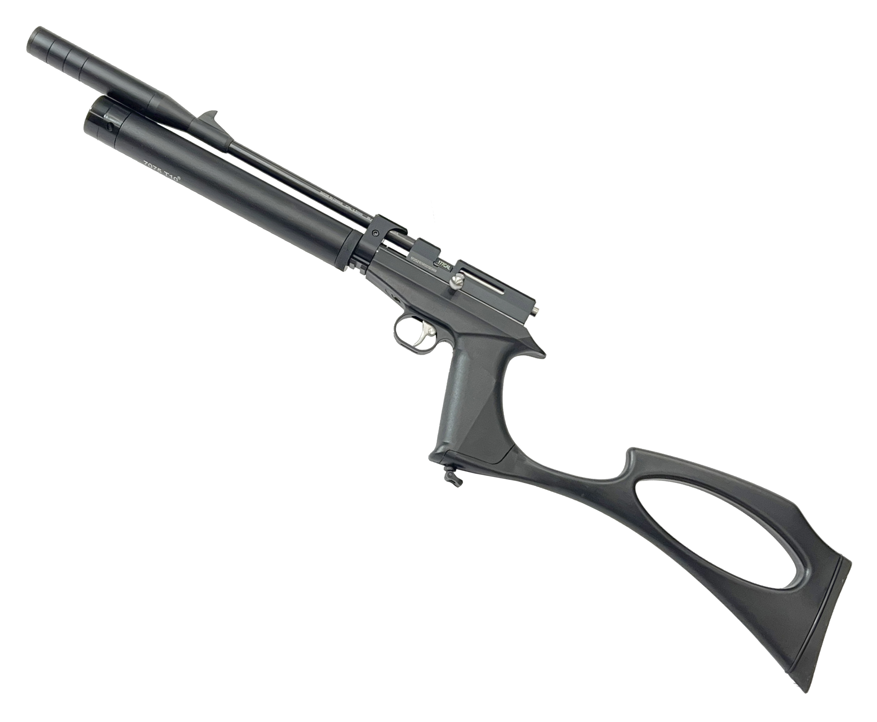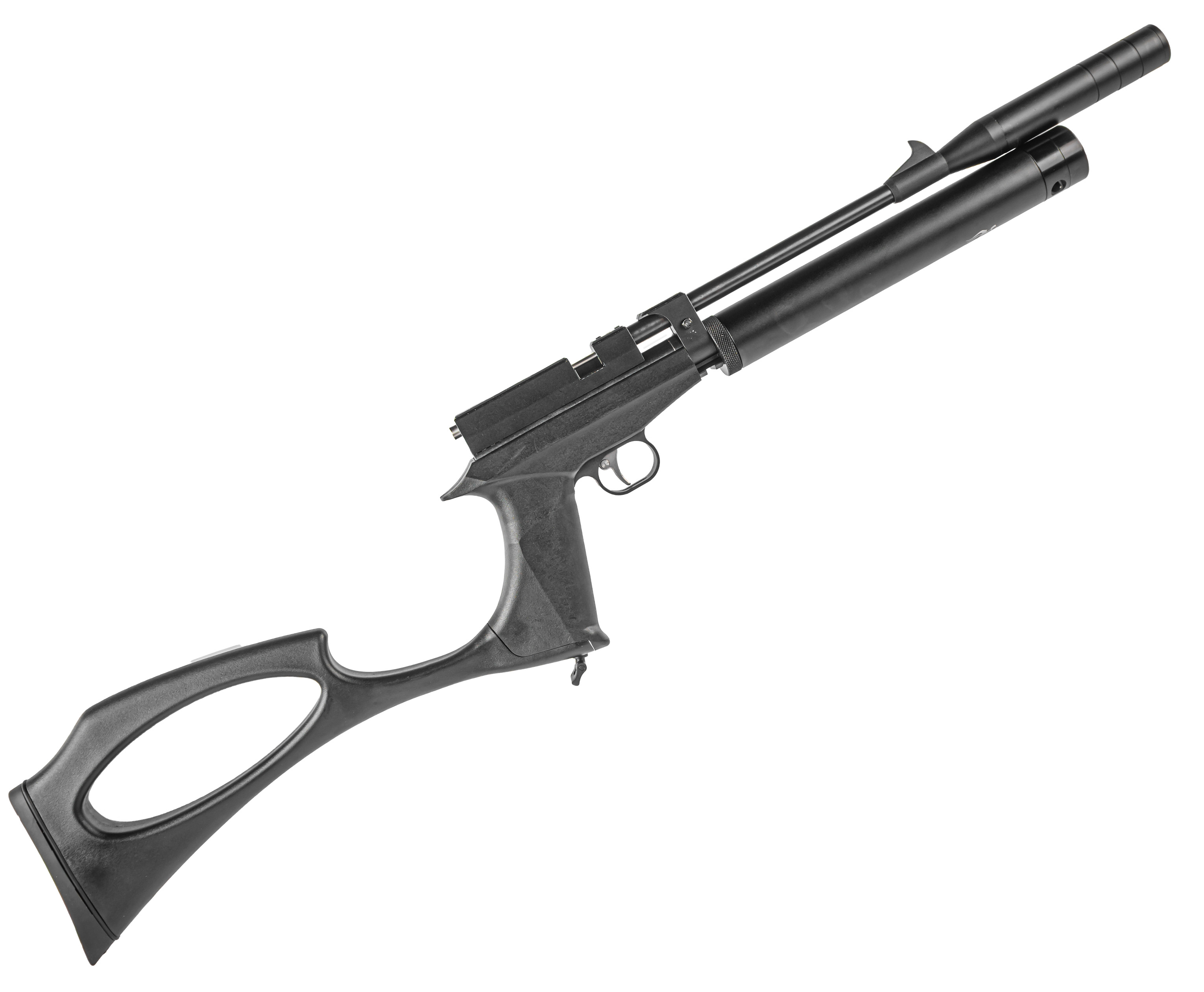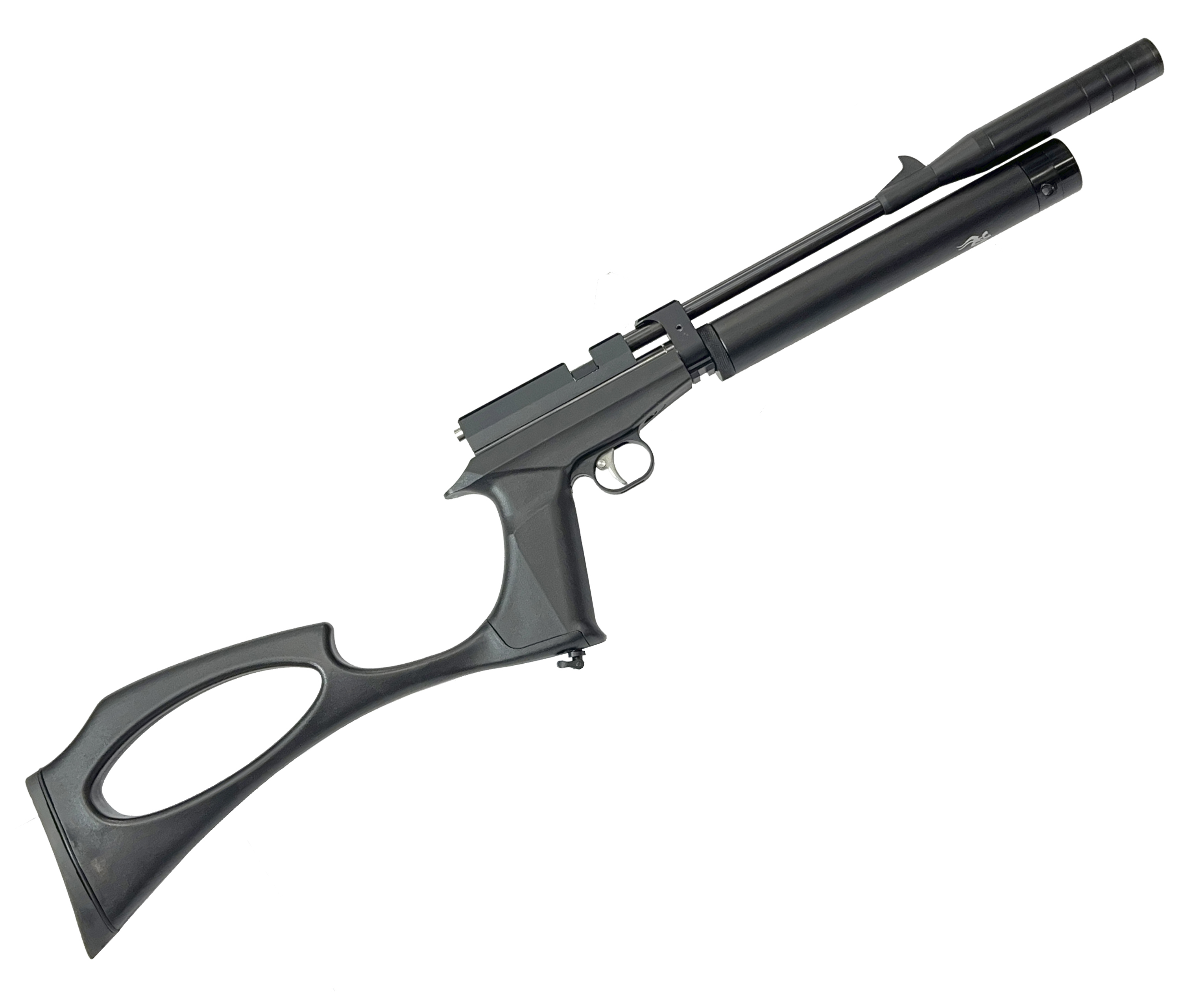 В результате такой модернизации можно получить компактный недорогой PCP пистолет, при этом будет устанавливаться штатный модератор и съемный приклад.
