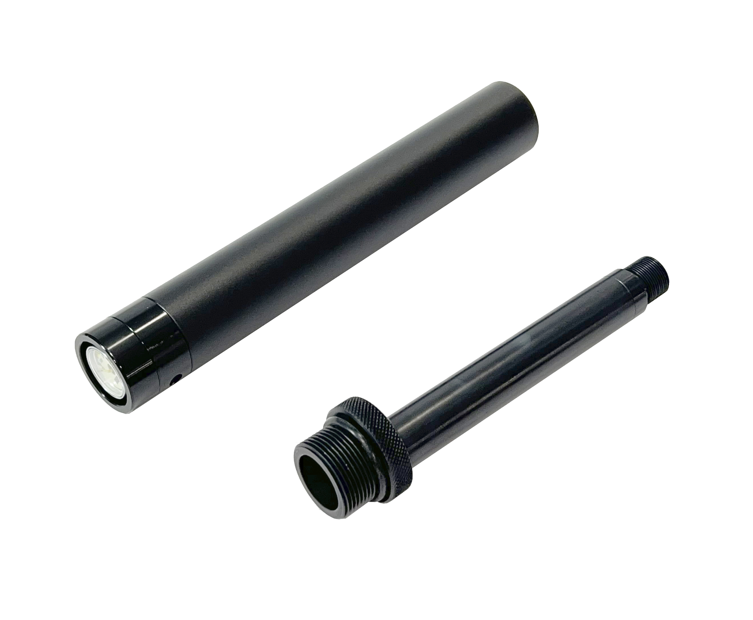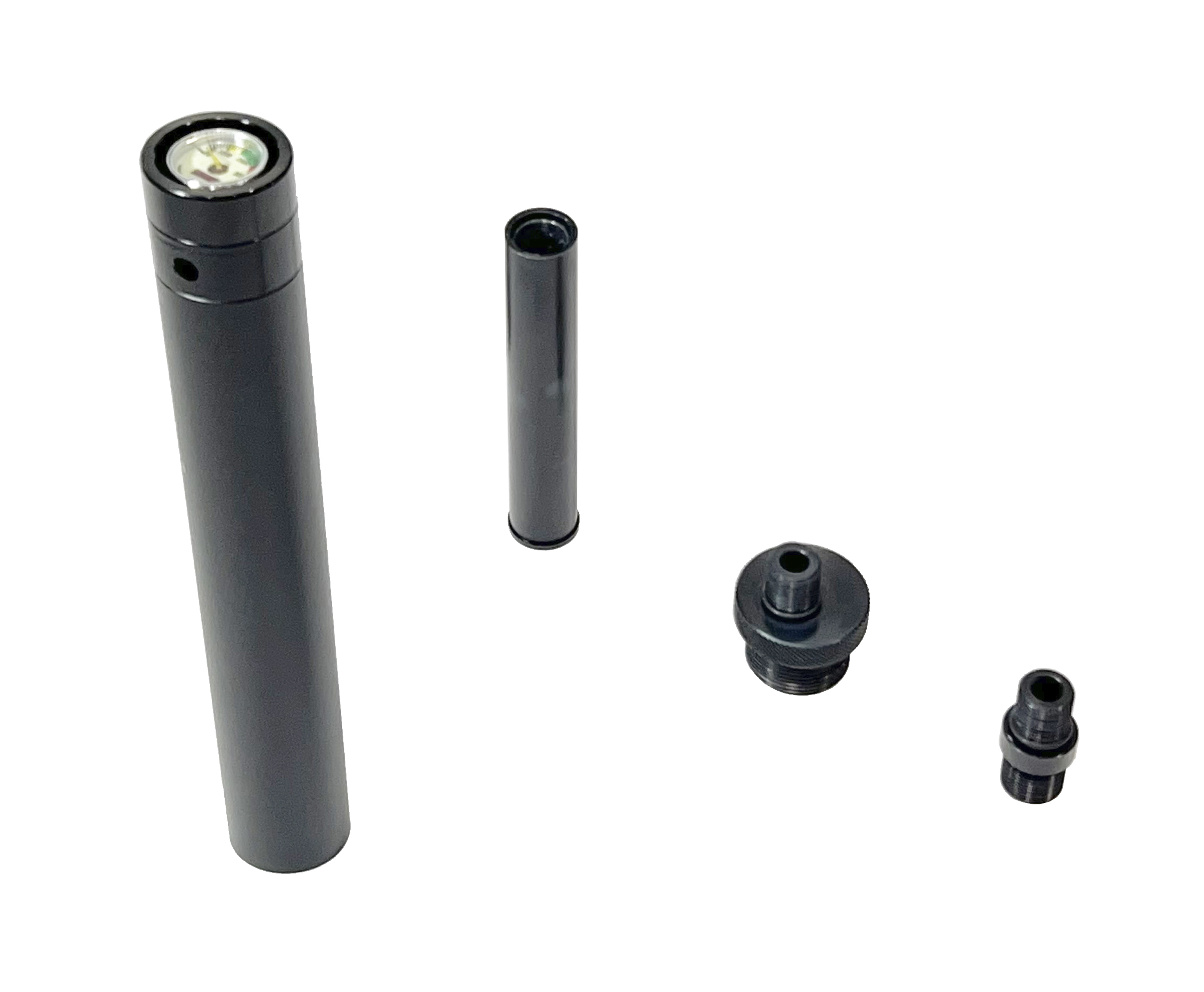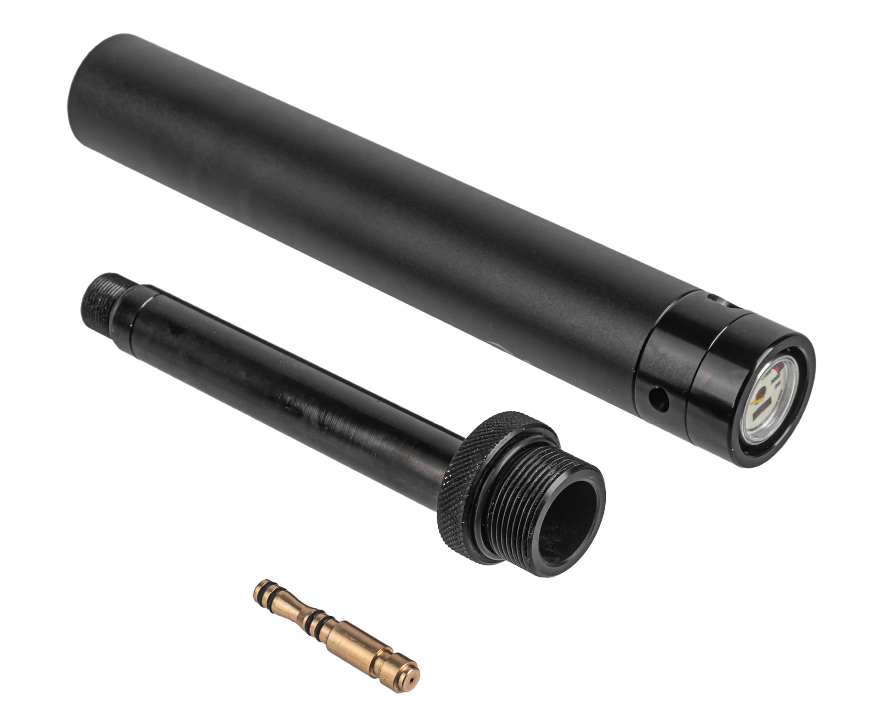 Переходник производится Российской компанией Zark Arms и сделан из трех деталей из дюрали Д16Т. Z переходник покрыт анодированием чёрного цвета. В комплекте также идет труба Shan Bao 20 см и передняя пробка с манометром, которые сделаны из аналога российской дюрали Д16Т, а именно из алюминия 7075 (Если кто не знает — это авиационный алюминий).