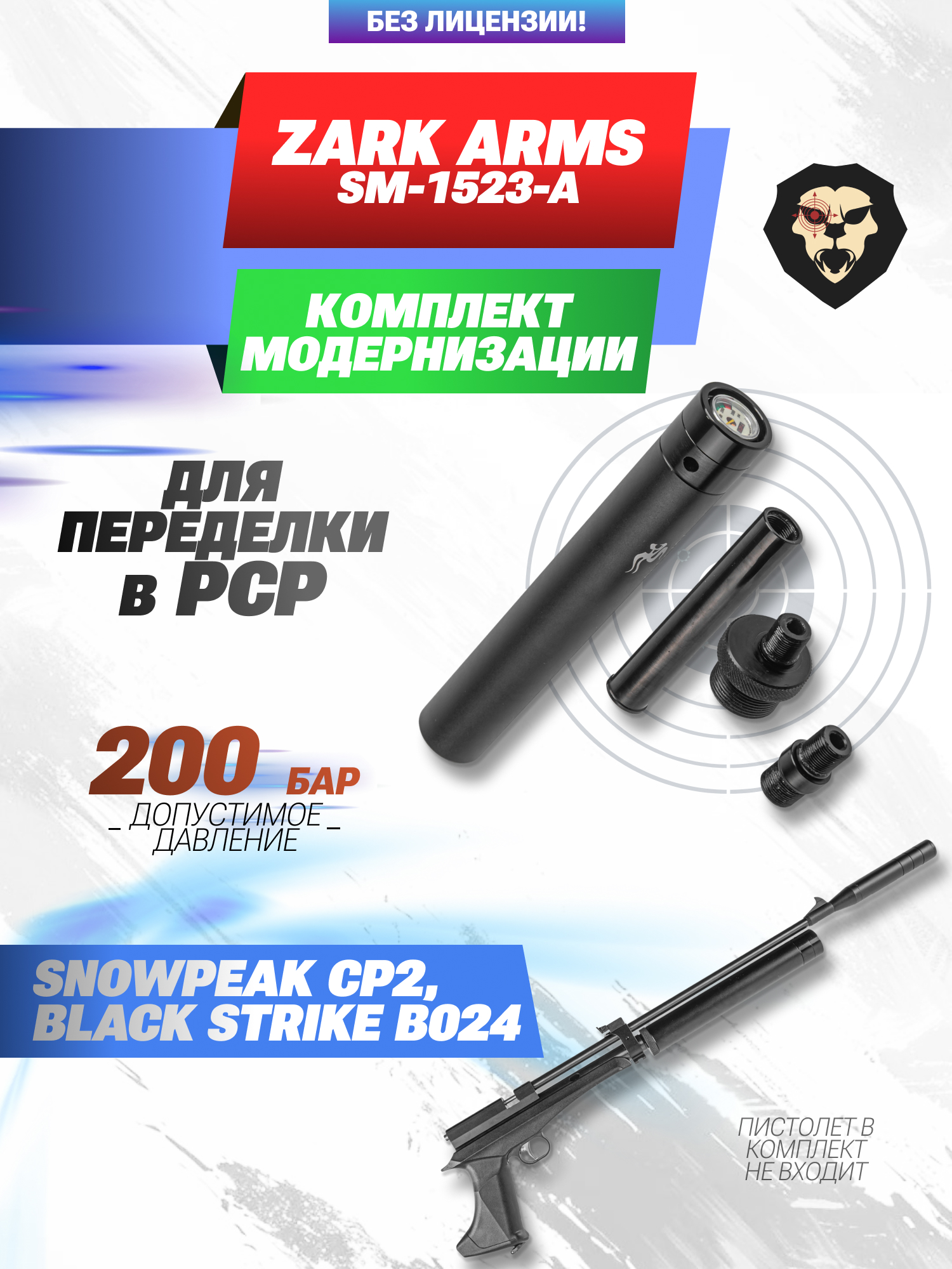 Артикул производителя SM-1523-A Комплект модернизации Snowpeak CP2, Black Strike B024 в РСР винтовку Zark SM-1523-A (переделка в PCP, КИТ) по низкой цене 8500 руб. Модель со штрихкодом производителя Вы можете оплатить наложенным платежем с доставкой или в отделении транспортной компании (ПЭК, СДЭК, Boxberry). Ваш заказ со штрихкодом 2000000182247 забрать на почте с оплатой при получении в любой части Российской Федерации.