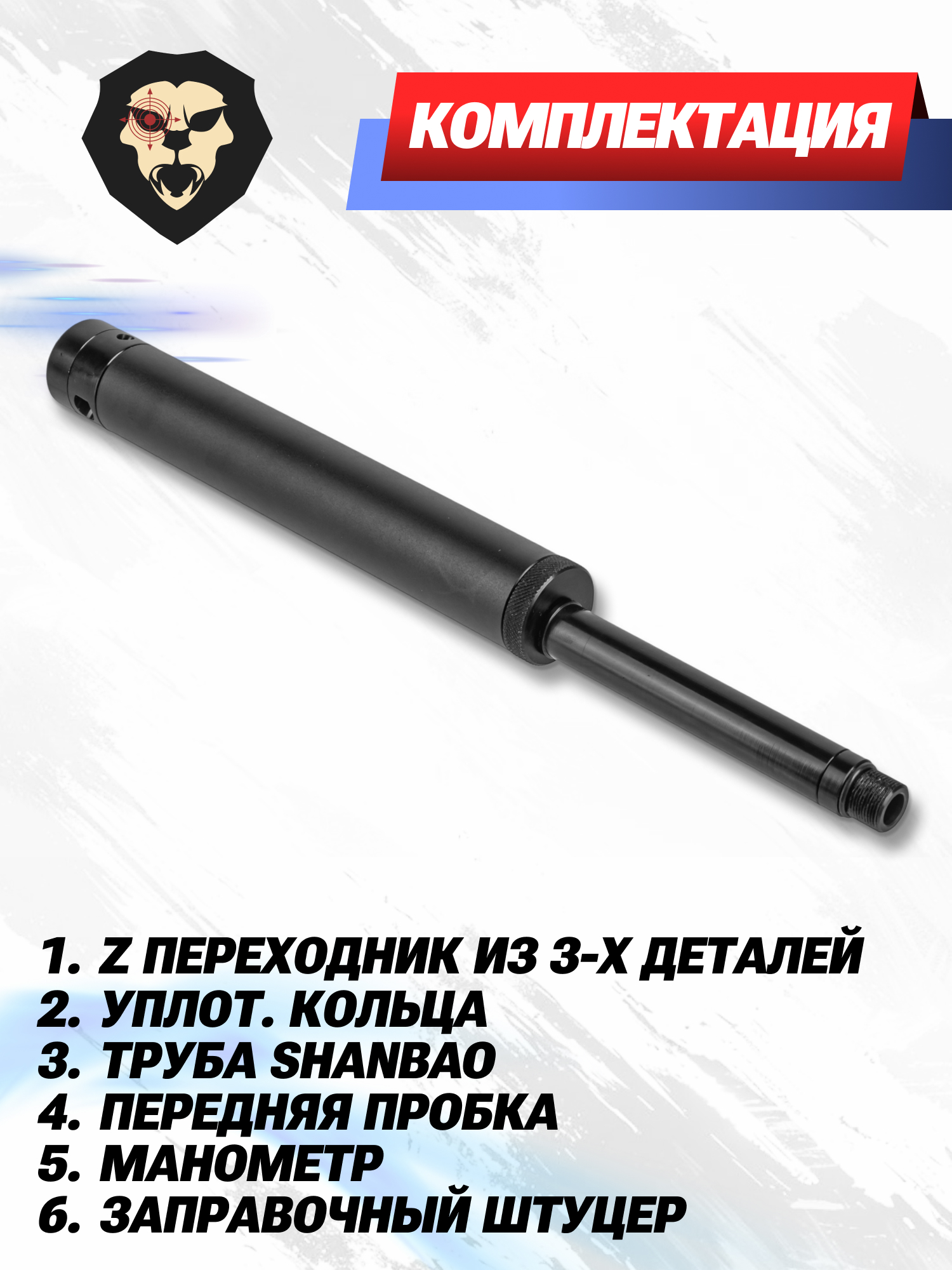 | Комплектация | Z-переходник, уплотнительные кольца, труба ShanBao, передняя пробка, манометр, заправочный штуцер, упаковка |