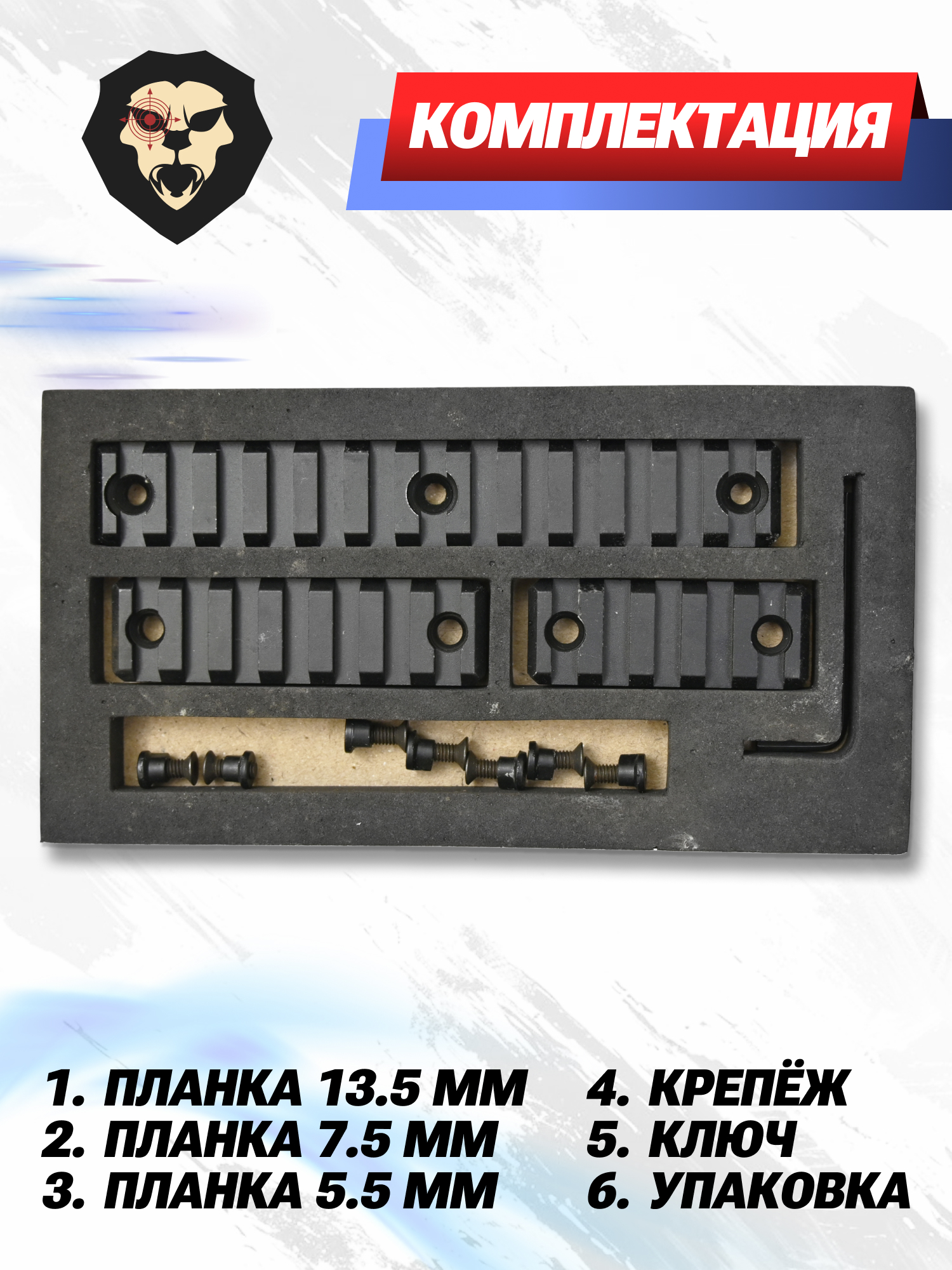 | Комплектация | Планка 13.5 мм, планка 7.5 мм, планка 5.5 мм, крепеж, ключ, упаковка |