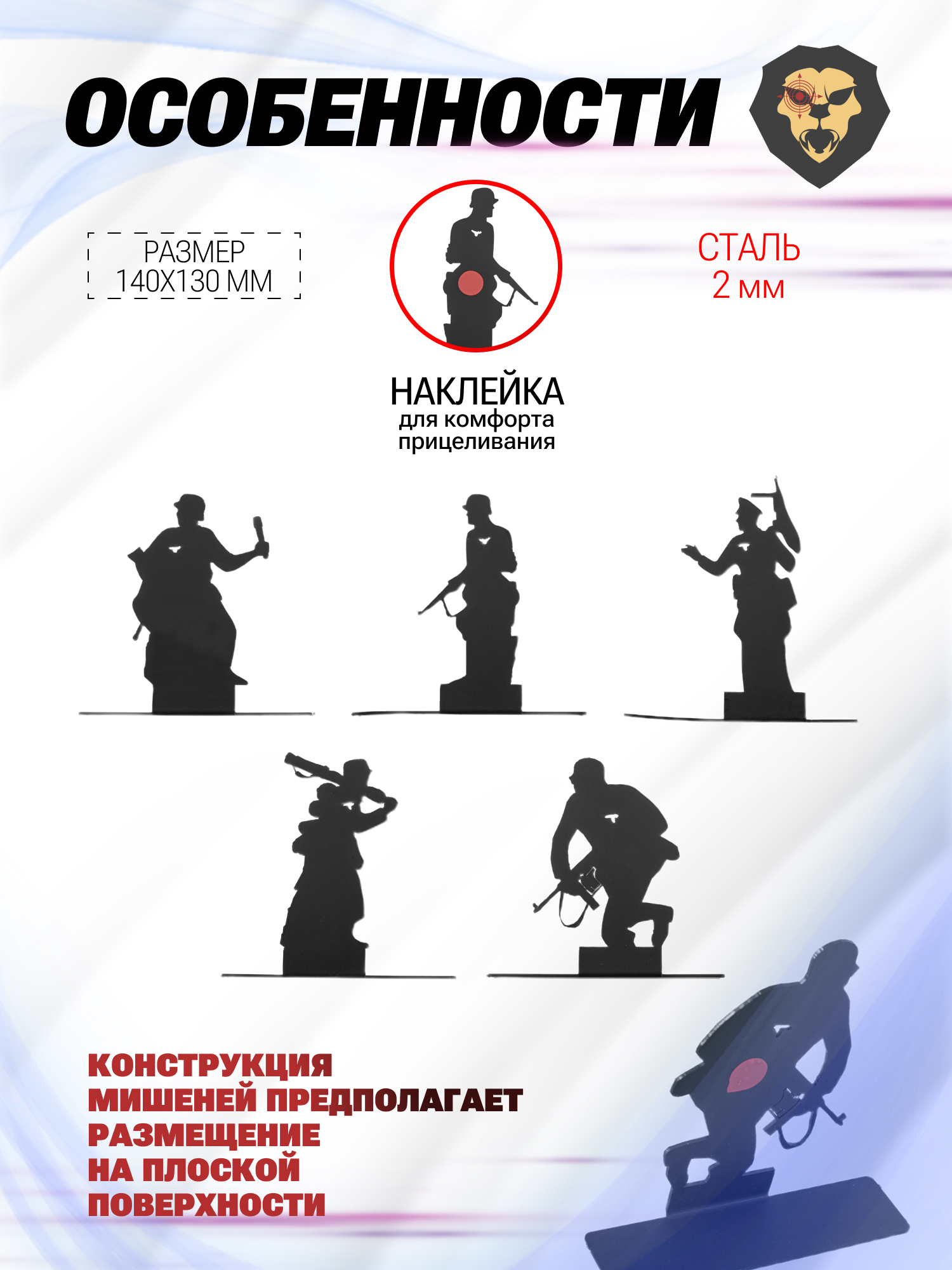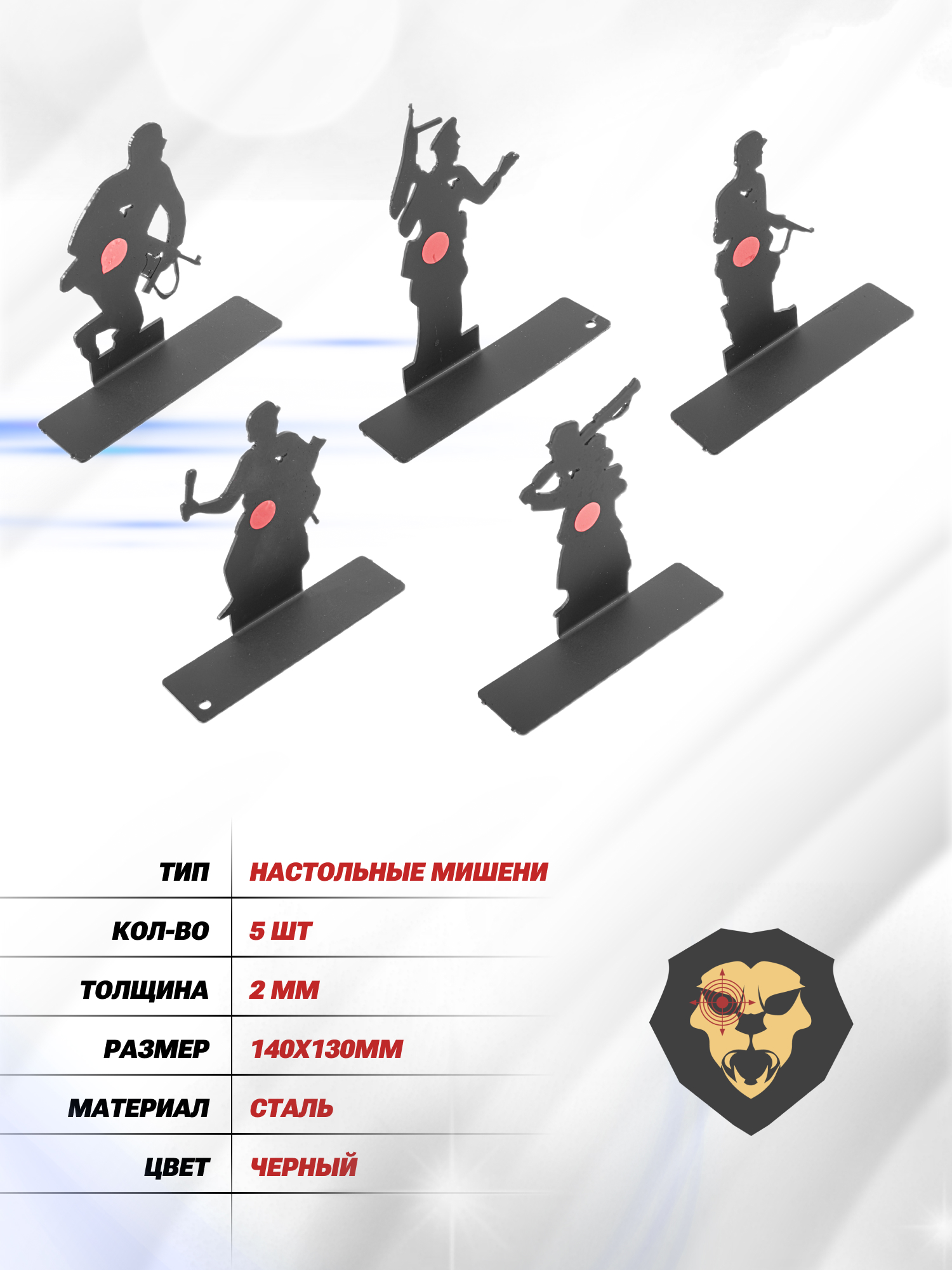 | Особенности | 5 мишеней, силуэты солдат, толщина стали 2 мм, размер 140x130 мм |