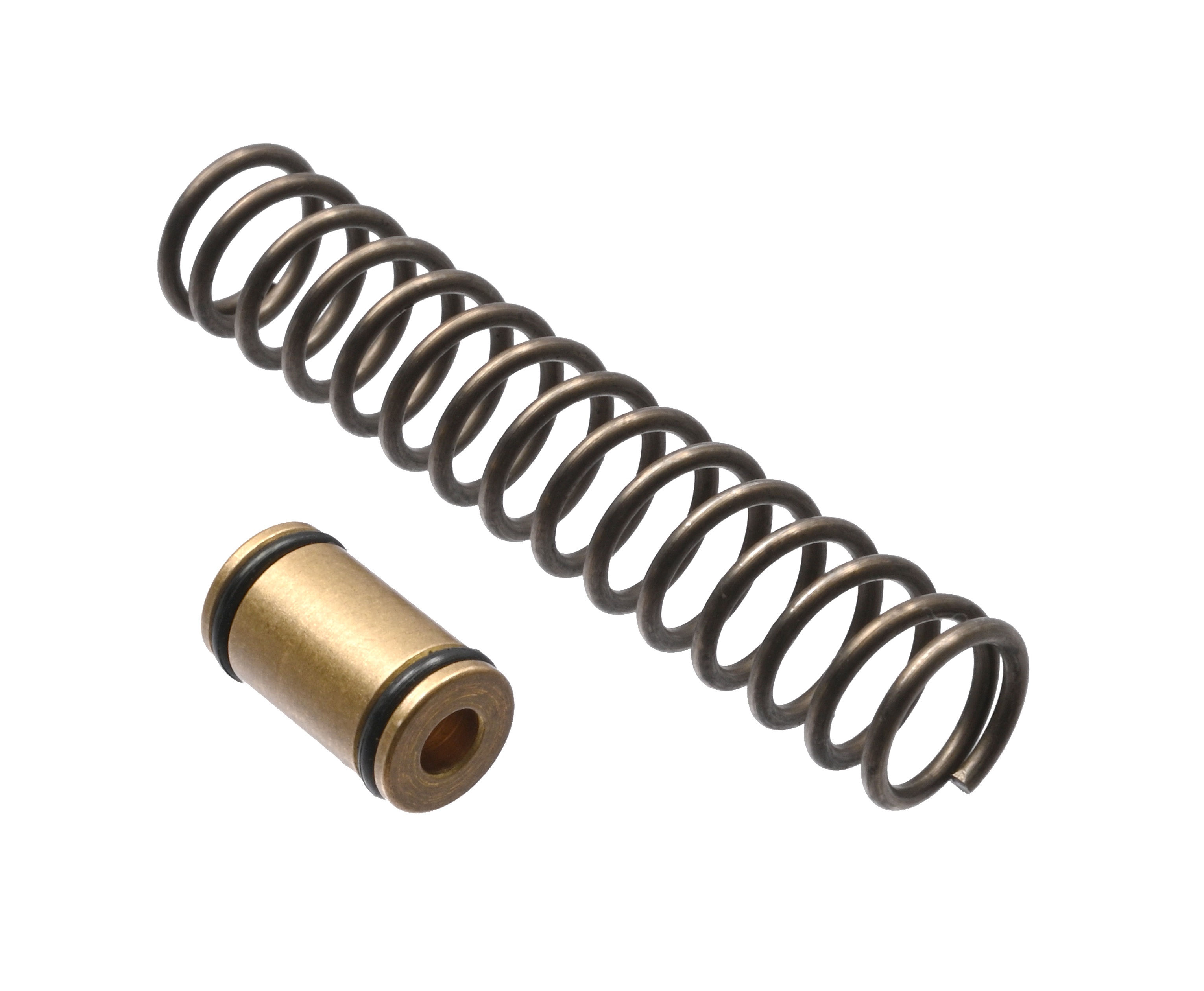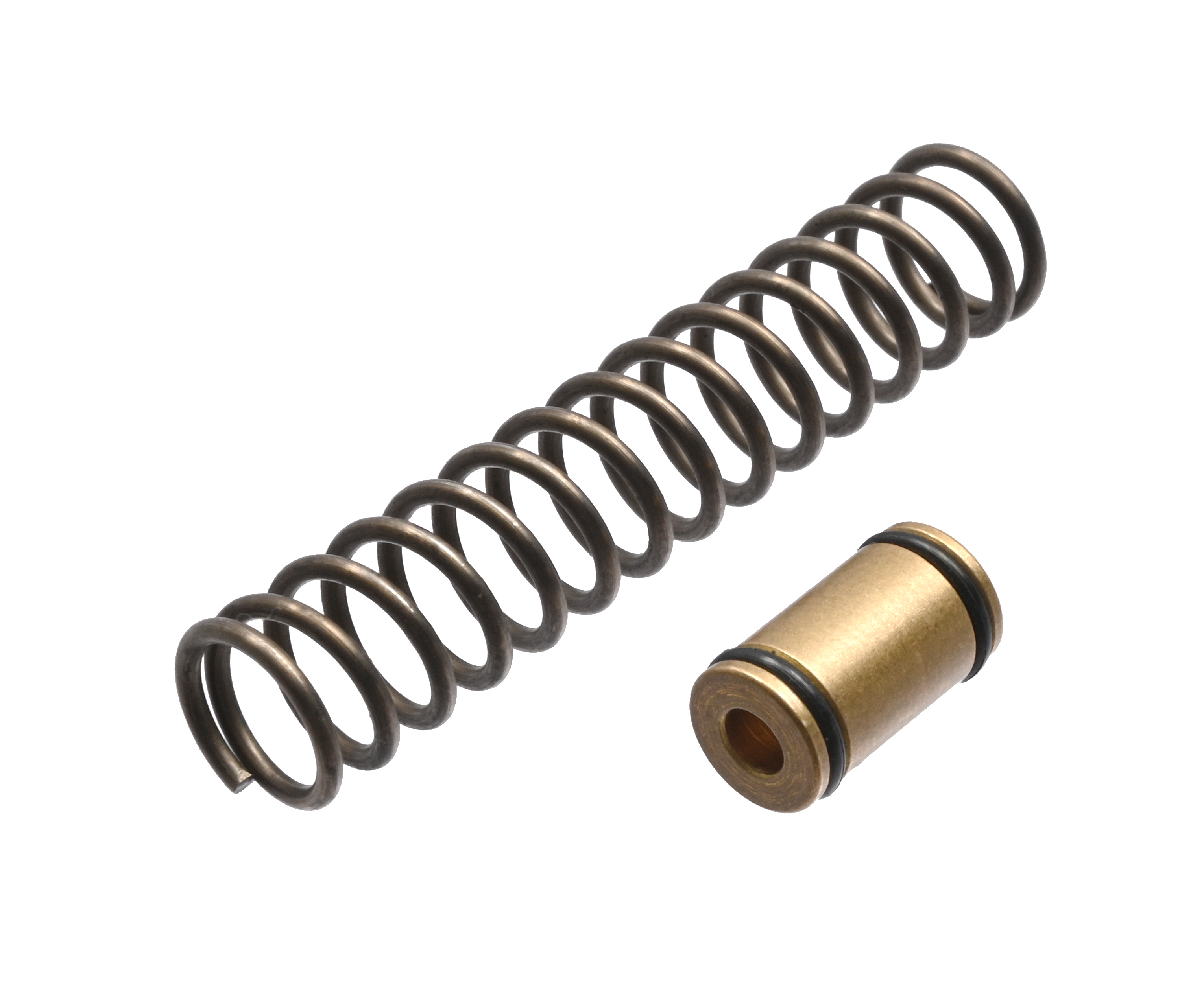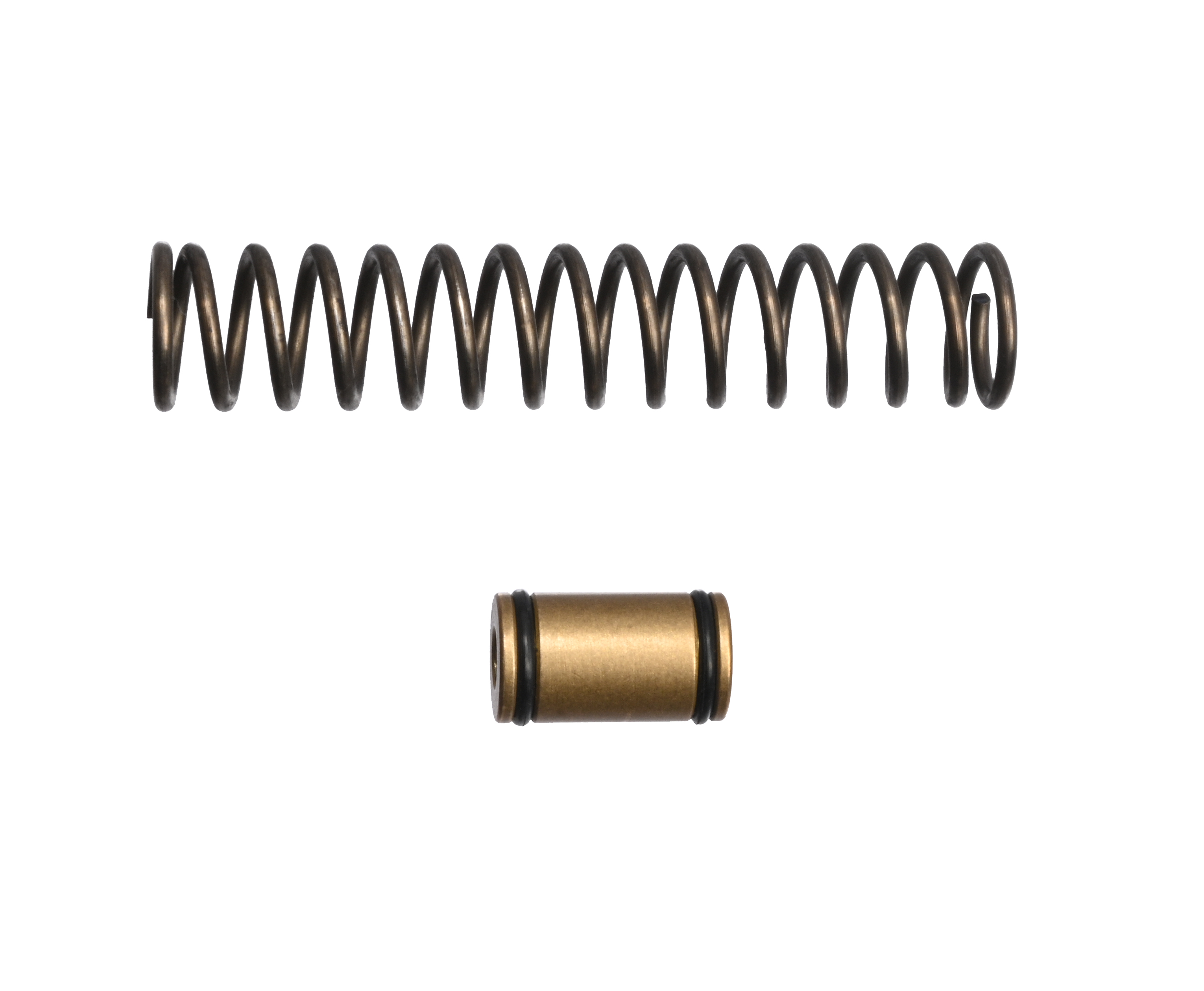 В поставку вошла втулка боевого клапана, выполненная из латуни, а также пружина УСМ. Перепуск характеризуется внешним диаметром 8 мм и устанавливается в штатное посадочное место. Внутренний канал 3.5 миллиметра обеспечивает передачу оптимального количества газа и ресивера в ствол для стрельбы воланчиковыми боеприпасами указанного калибра.