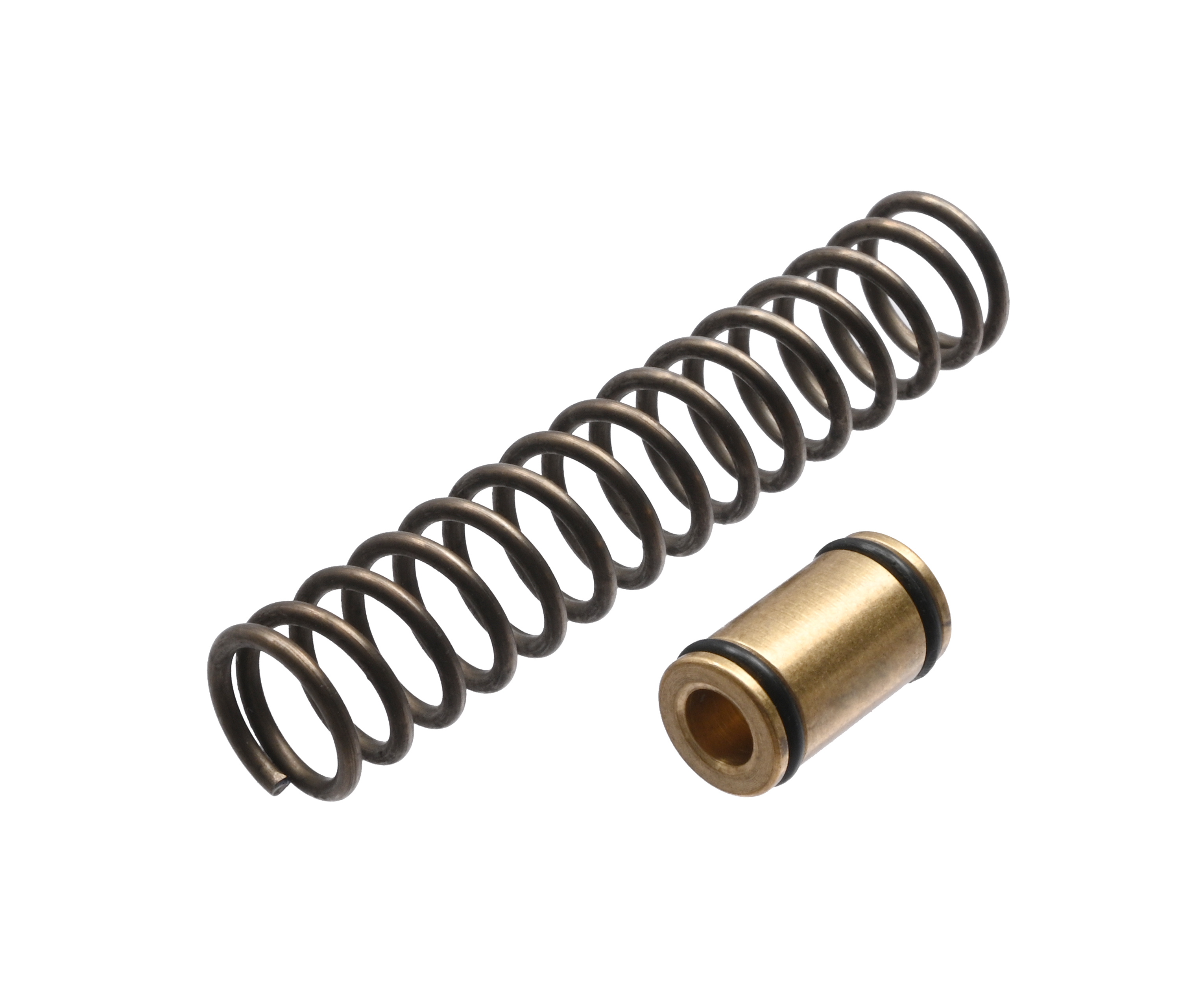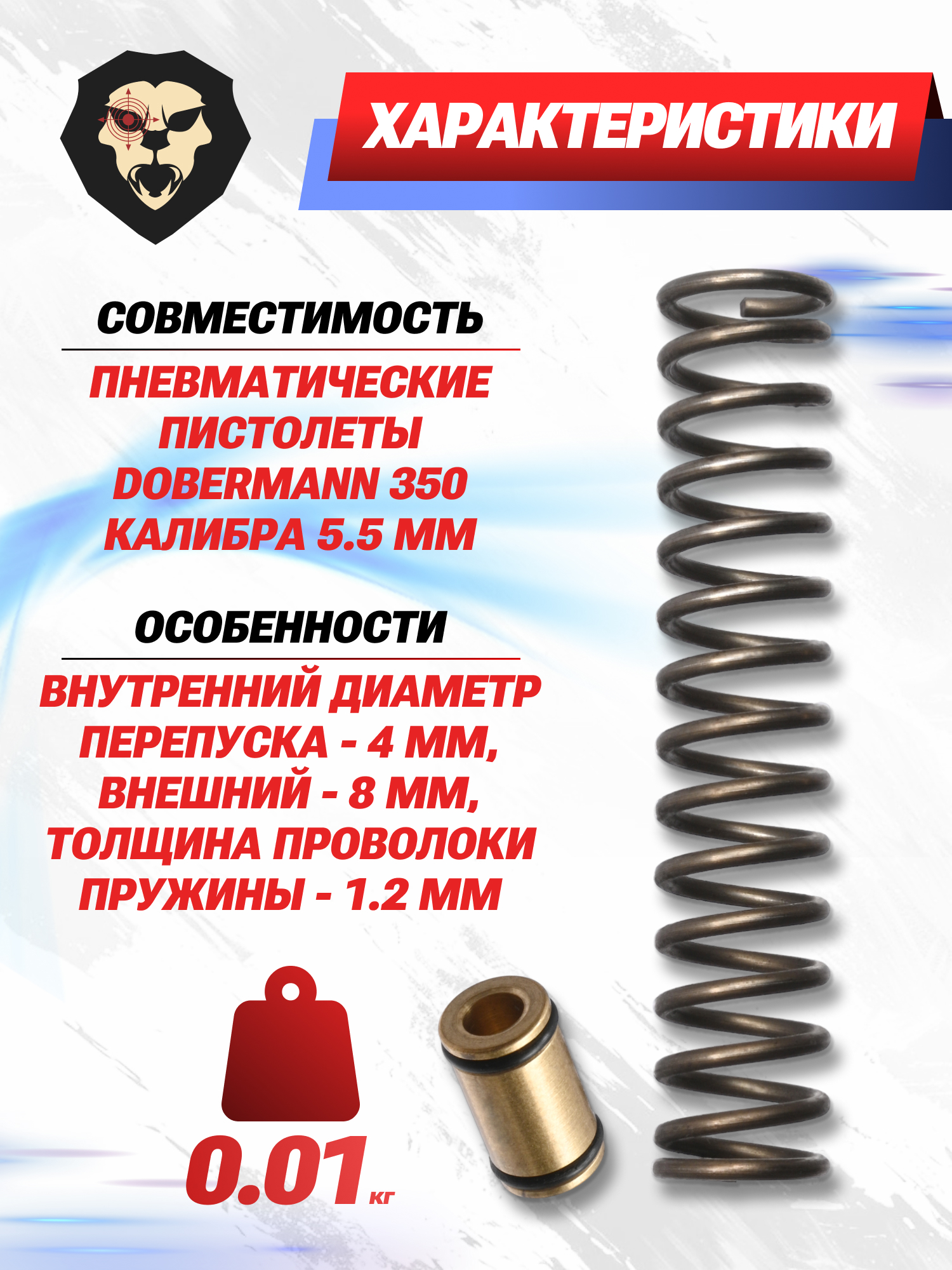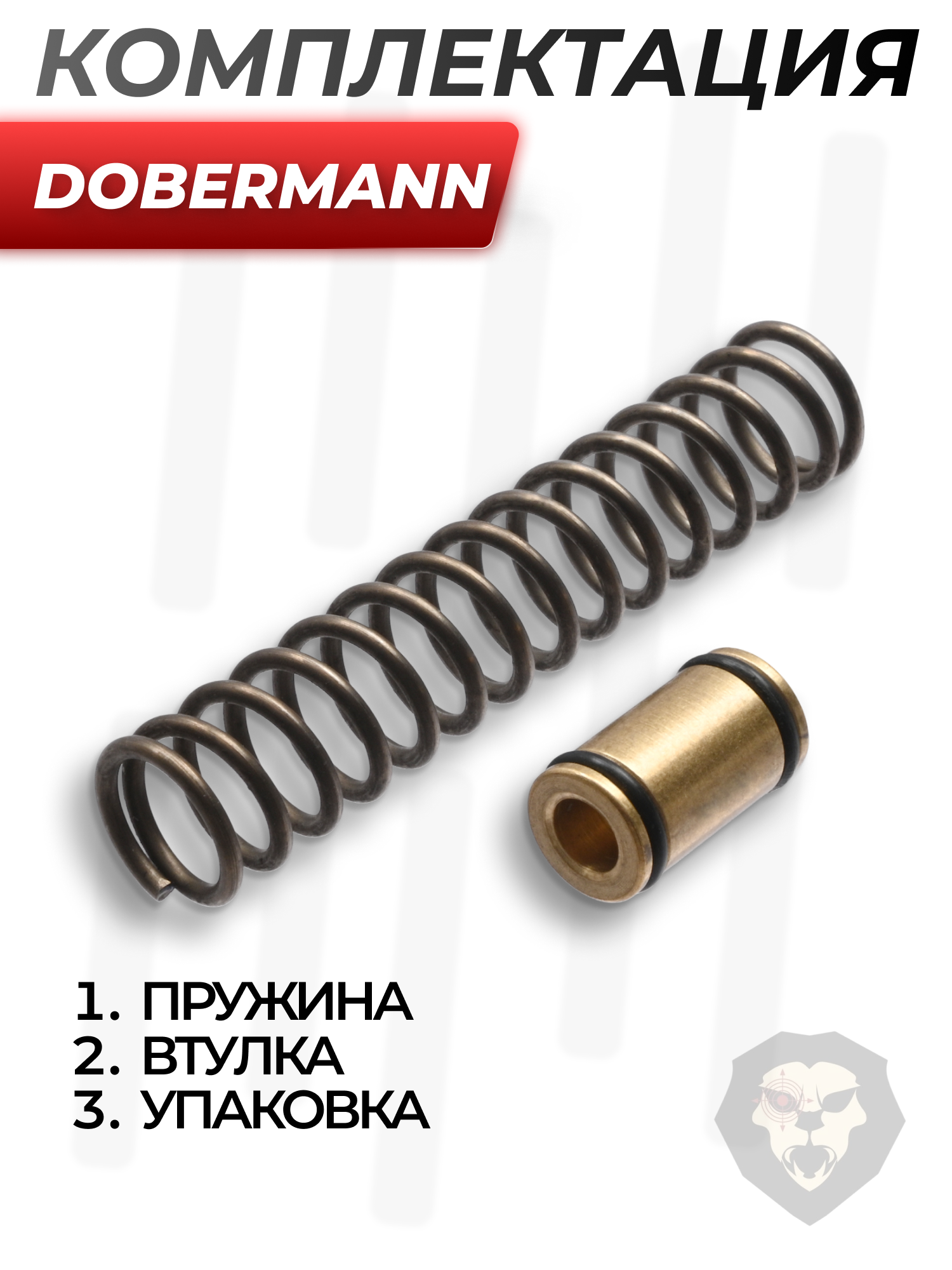 Так изготовитель предлагает широкий выбор приспособлений для усовершенствования и настройки как винтовок Альфа, так и пистолетов 350-й серии. Специально для последних фирма Dobermann выпустила обозреваемый набор, состоящий из перепускной втулки и пружины ударника. Комплект рассчитан для установки в стрелковые единицы со стволом 5.5 мм.