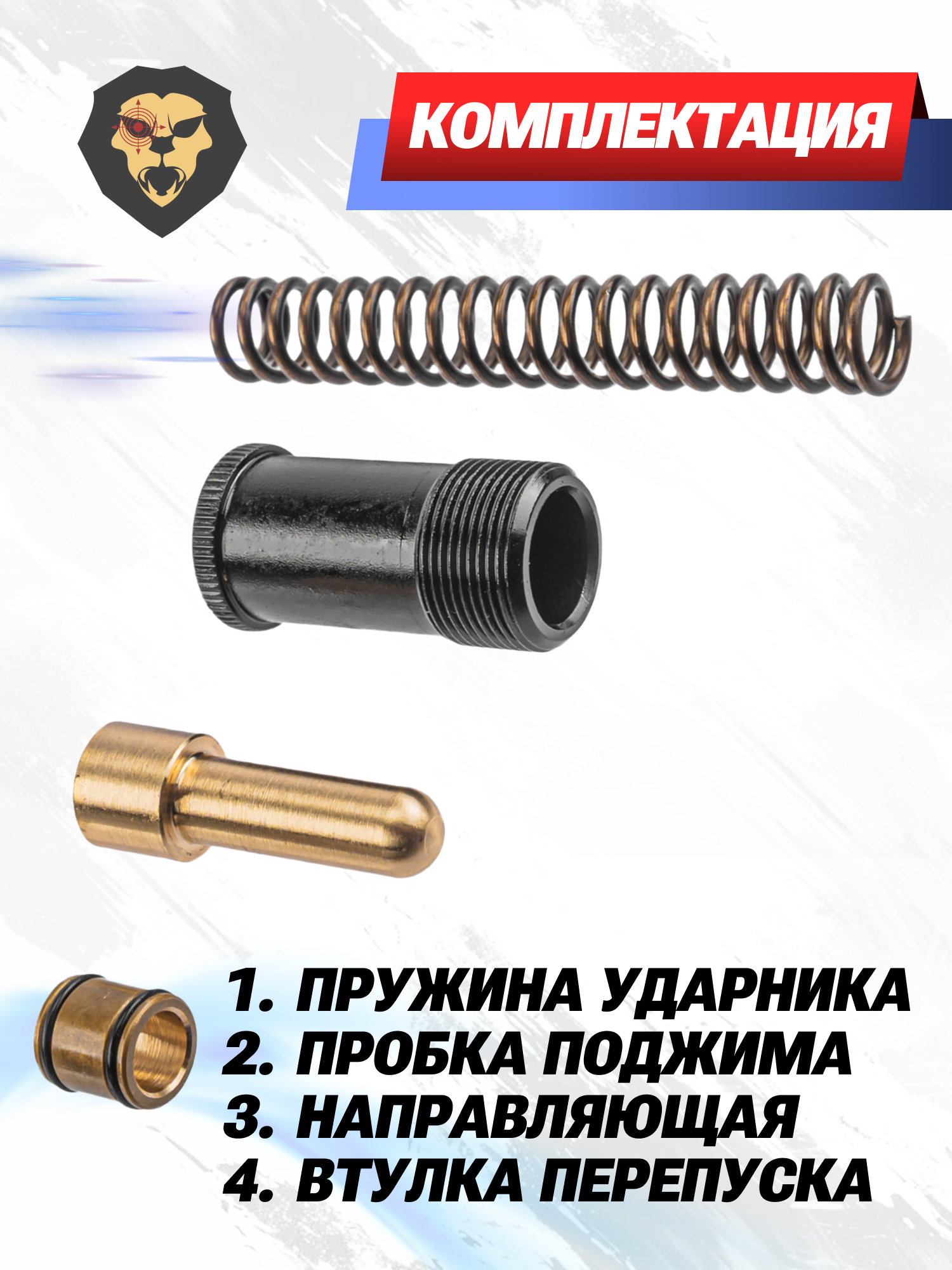 | Комплектация | Пружина ударника, направляющая, перепуск, удлиненная пробка поджима, упаковка |
