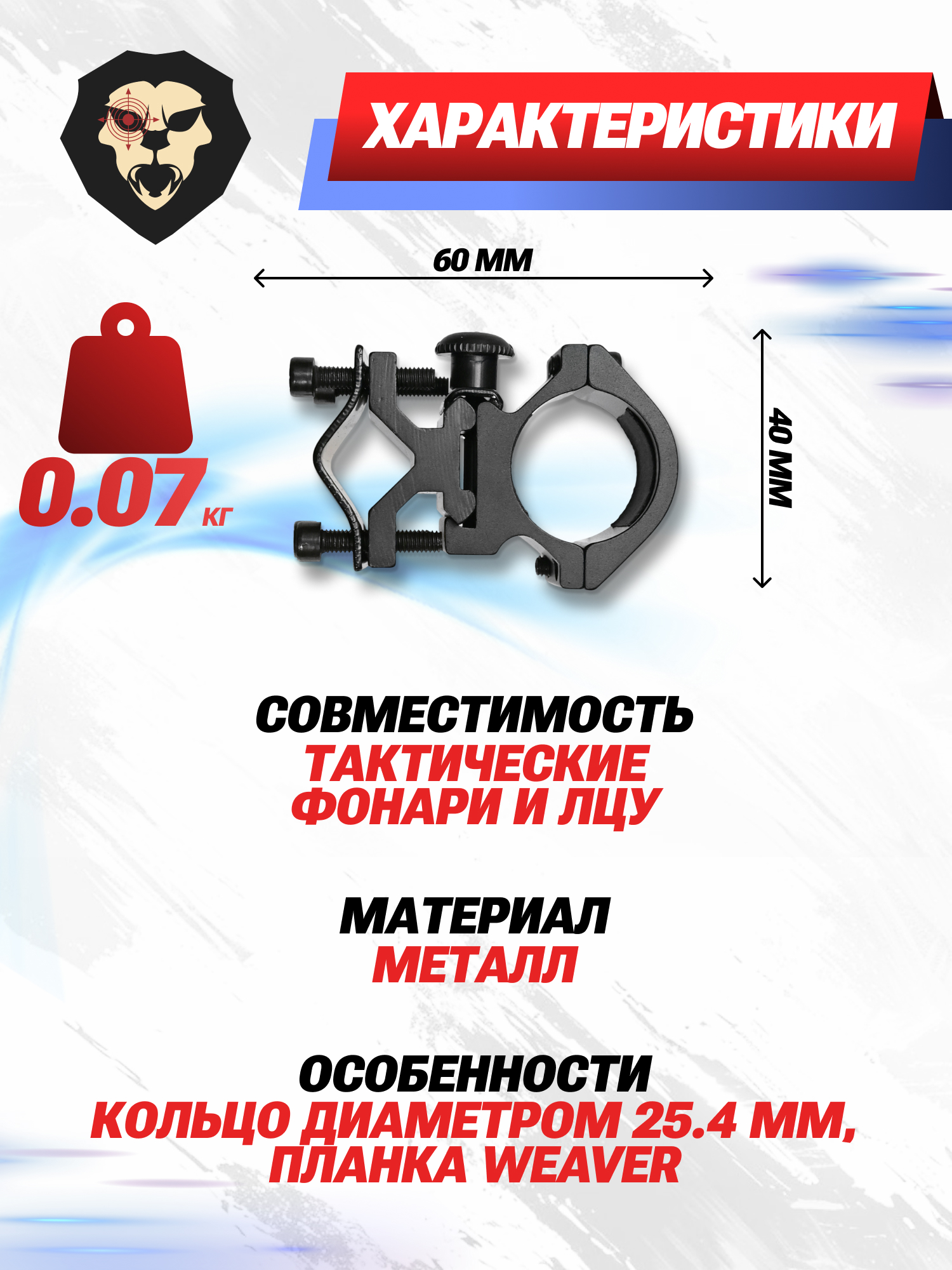 | Особенности | Кольцо диаметром 25.4 мм, планка Weaver |