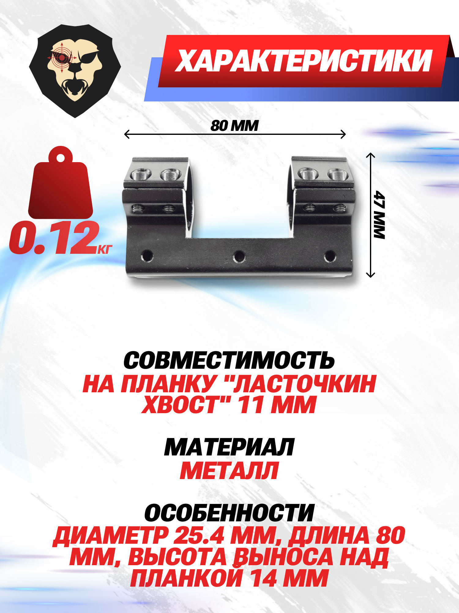 | Особенности | Диаметр 25.4 мм, длина 80 мм, высота выноса над планкой 14 мм |