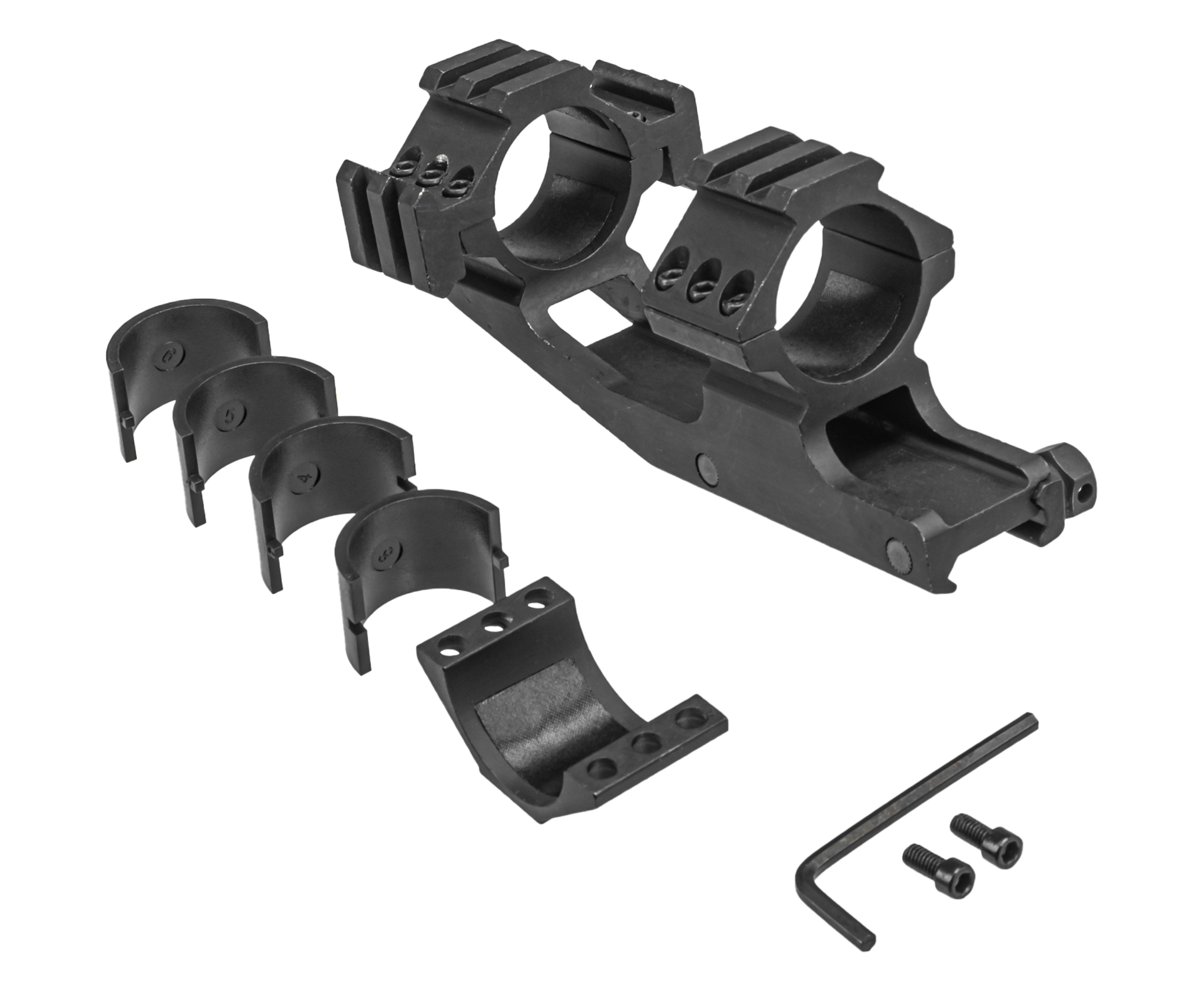 | Особенности | С выносом, дополнительные планки над кольцами, посадочный диаметр 25.4-30 мм |