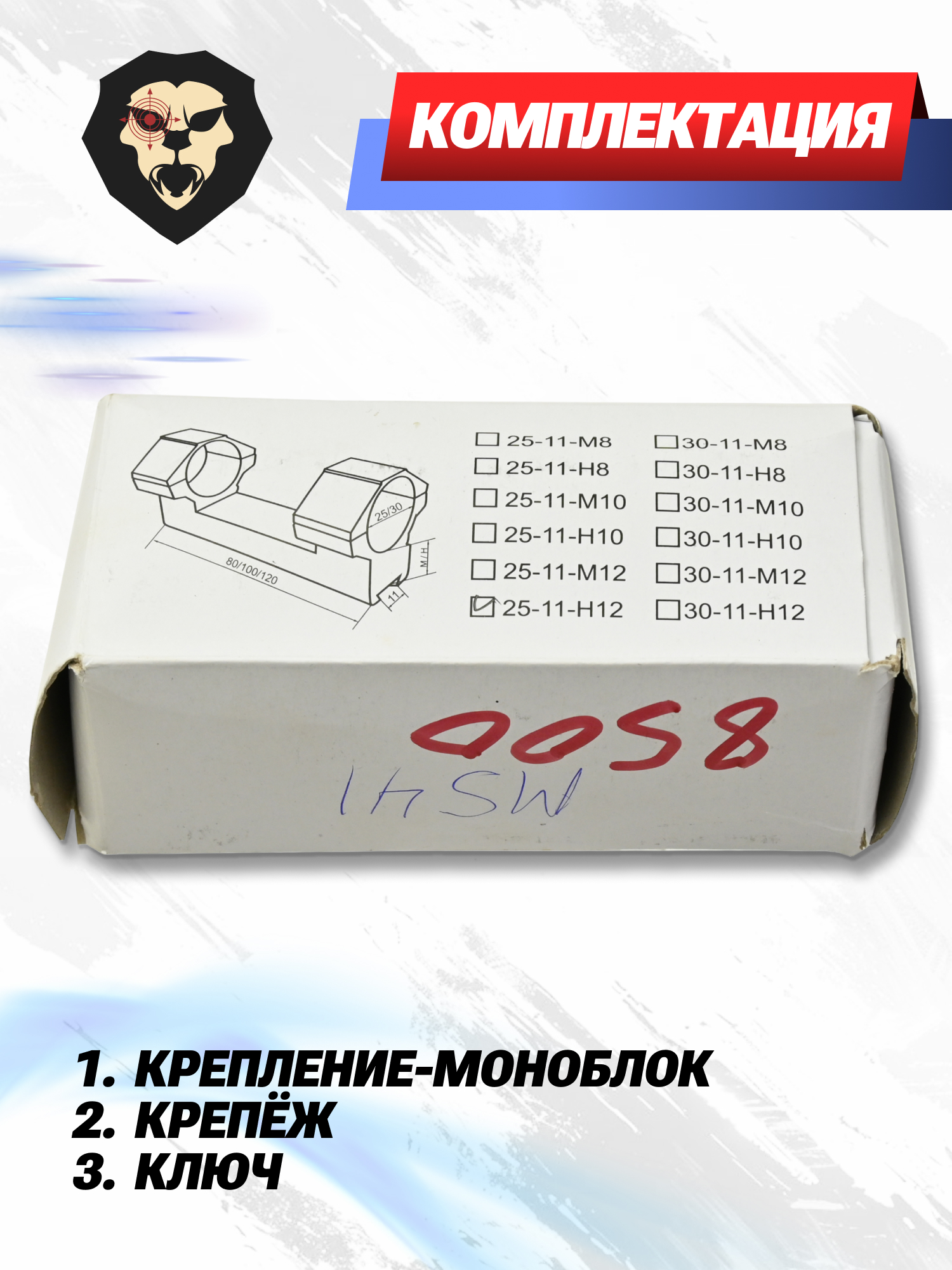 Немаловажная характеристика, влияющая на процесс установки - это размер объектива прицела, чем он больше, тем выше должен быть профиль посадочных компонентов. Крепление моноблок Patriot BH-MS41 выделяется наличием среднего 14 мм основания, совместимого с направляющей планкой типа «Ласточкин хвост». Монтаж выполняется посредством четырех прижимных винтов, для затягивания которых предусмотрен шестигранный ключ.