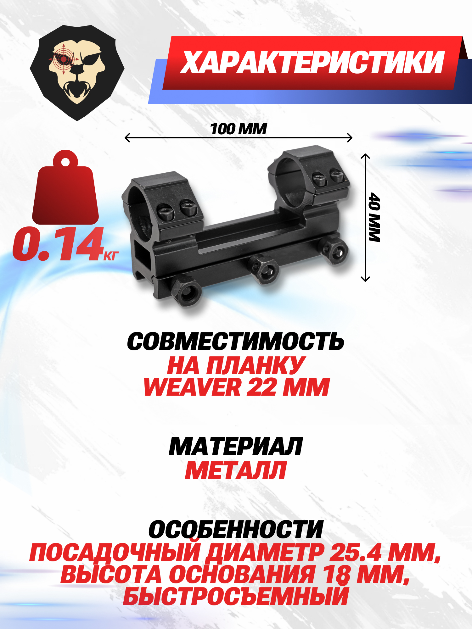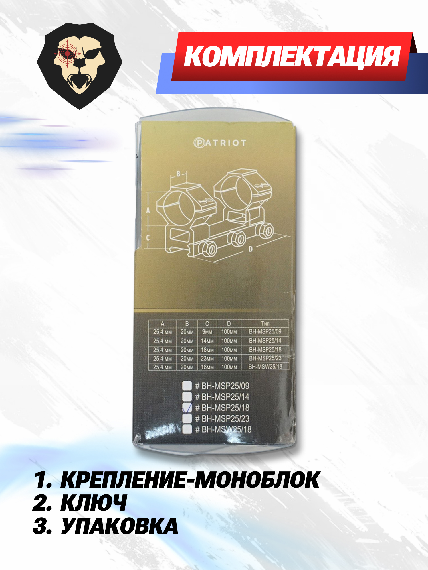 Крепление-моноблок Patriot BH-MSP25/18 (Weaver, 25.4 мм, средний 18 мм) купить в интернет-магазине Popadiv10.