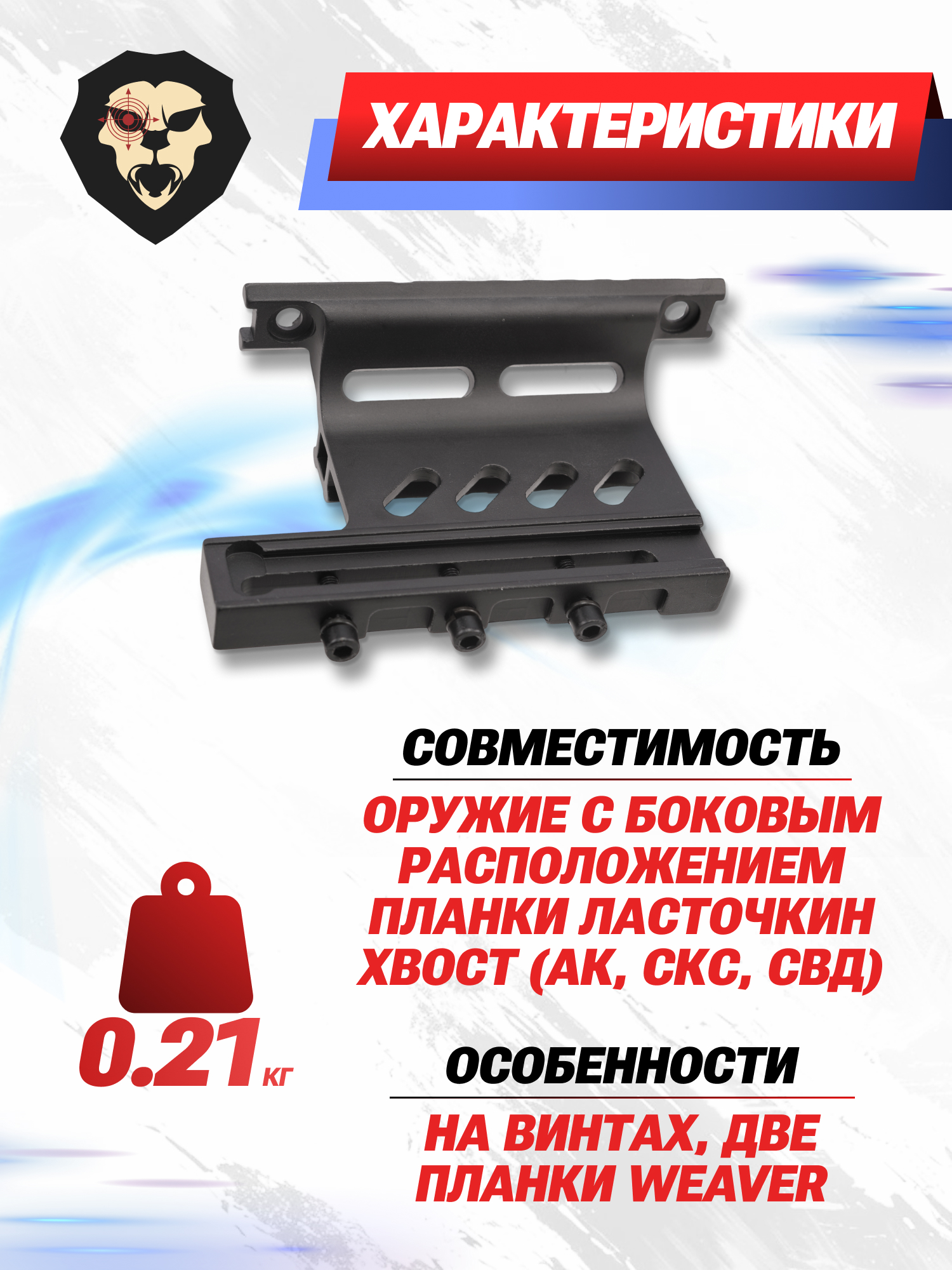 | Совместимость | Оружие с боковым расположением планки Ласточкин хвост (АК, СКС, СВД) |