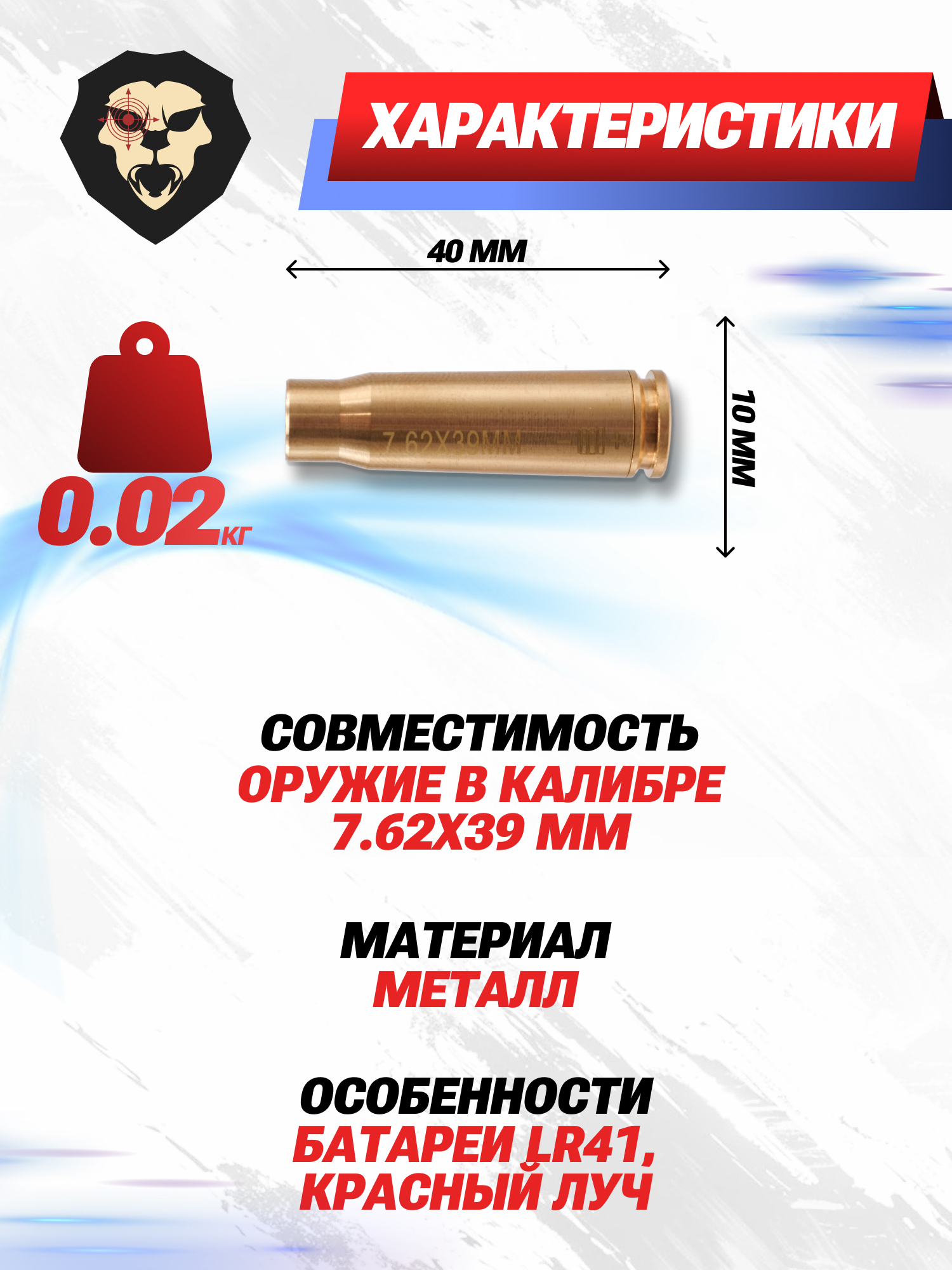 Информация о товаре "Лазер холодной пристрелки Patriot BH-LXP39 (7.62x39 мм)" носит ознакомительный характер, и не является публичной офертой, определяемой положениями Статьи 437 Гражданского кодекса Российской Федерации, характеристики, внешний вид, цвет и комплектация могут быть изменены производителем без уведомления.
