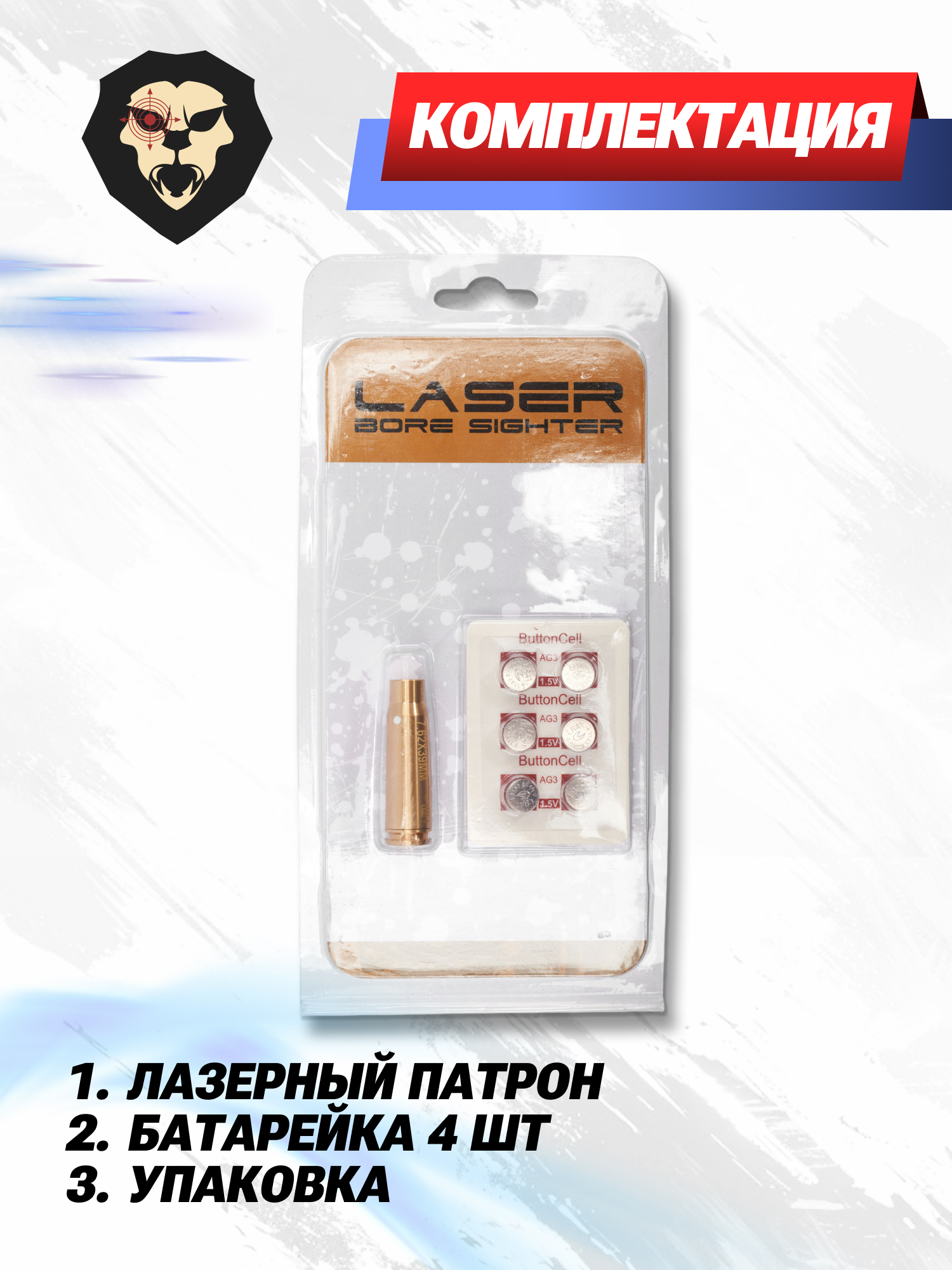 | Комплектация | Лазерный патрон, батарейка - 4 шт, упаковка |