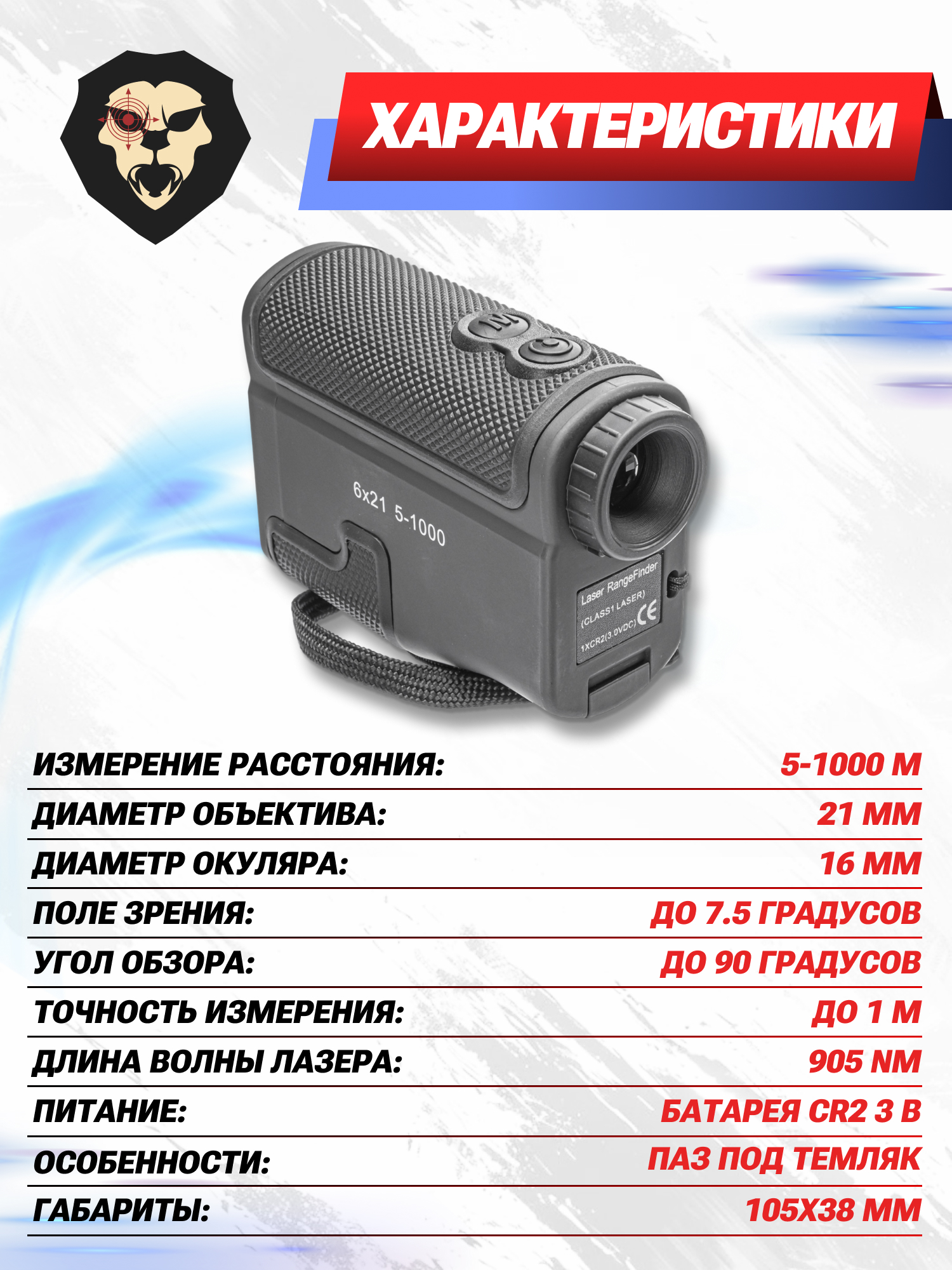 | Комплектация | Дальномер, чехол, ремешок, упаковка |