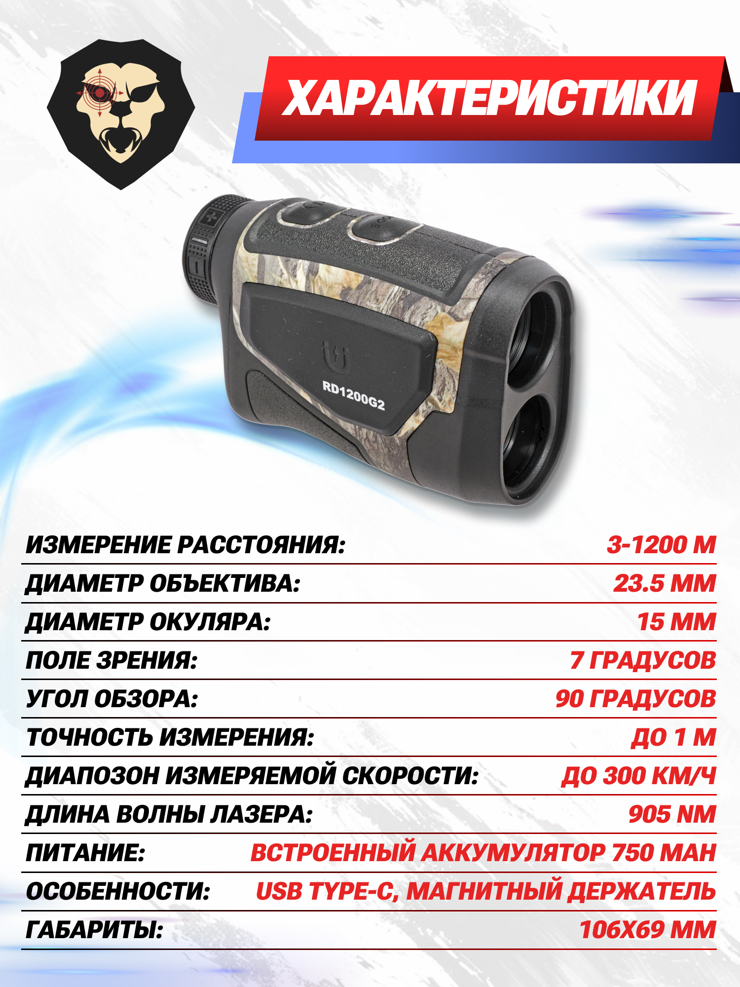 | Комплектация | Дальномер, кабель USB Type-C, ремешок, чехол, краткая документация, упаковка |