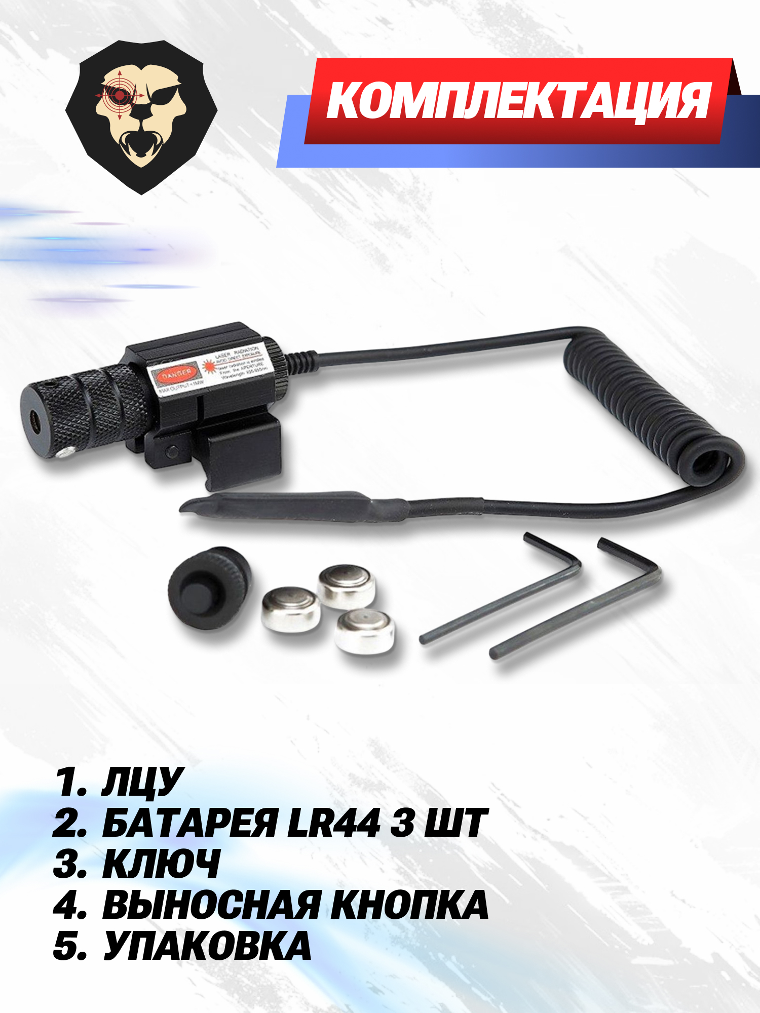 | Комплектация | Лазерный целеуказатель, батарея LR44 — 3 шт, шестигранный ключ, выносная кнопка, краткая документация, упаковка |