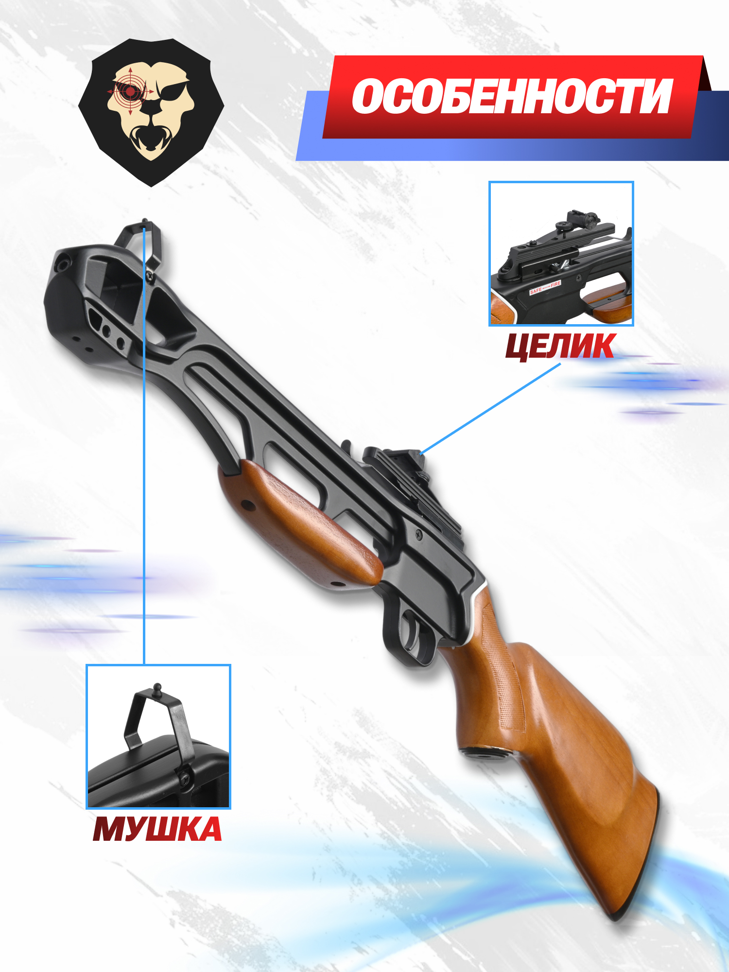 Кроме этого, без ограничений можно также приобрести любые плечи с усилием натяжения до 43 кгс. В наборе при этом поставляется масса дополнительных аксессуаров, включая износостойкую тетиву из данейма, и стремя. Подножка выполняет функцию упора, в результате чего упрощается процедура взведения арбалета.