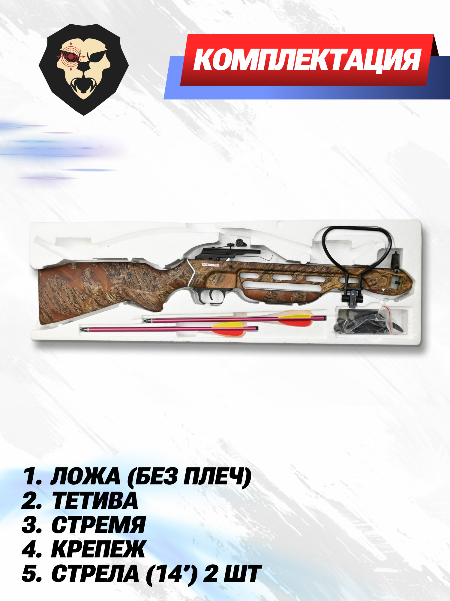 | Комплектация | Арбалет (без плеч), тетива, стремя, крепеж, стрелы — 2 шт, упаковка |