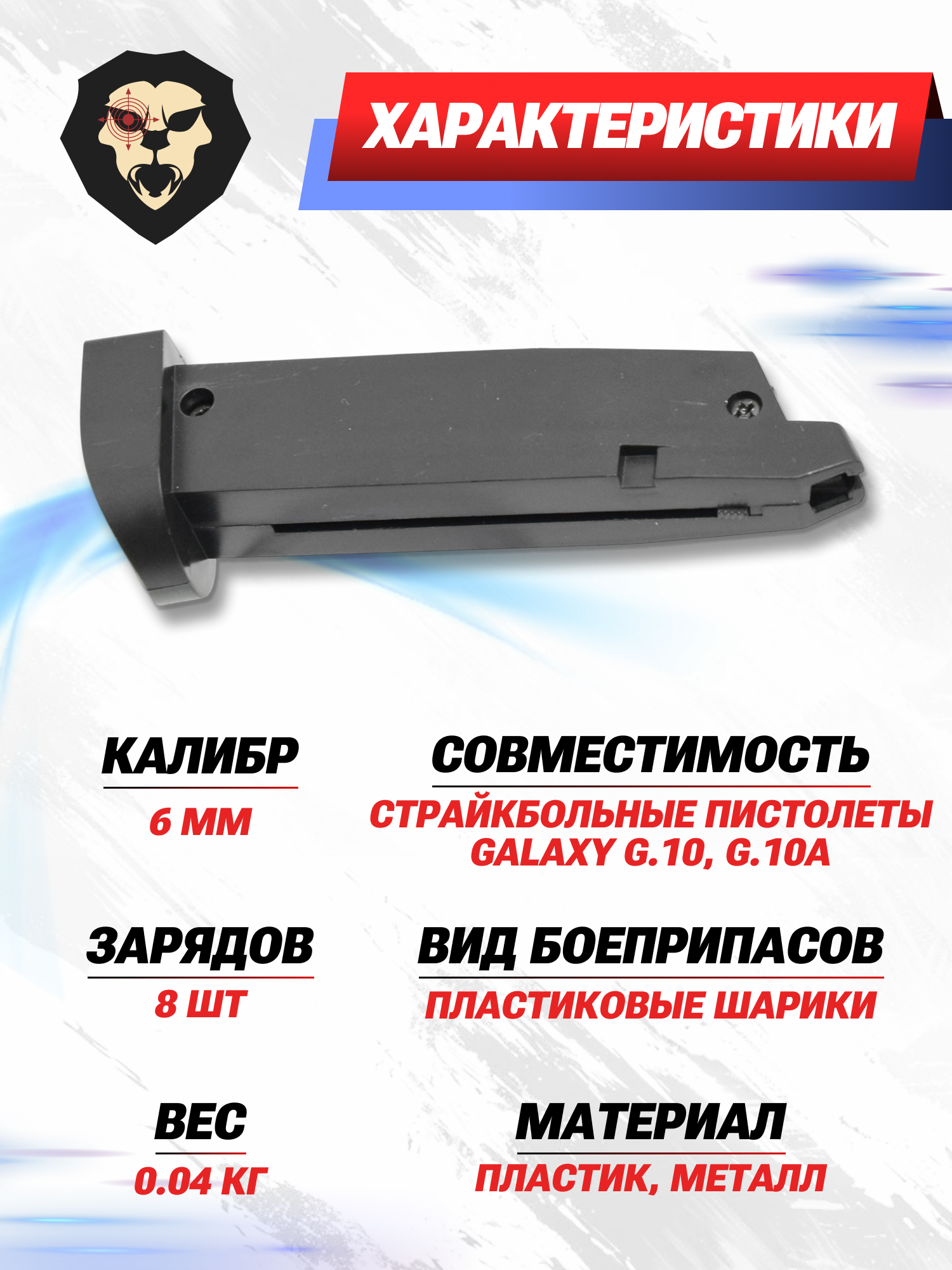 | Совместимость | Страйкбольные пистолеты Galaxy G.10, G.10A |
