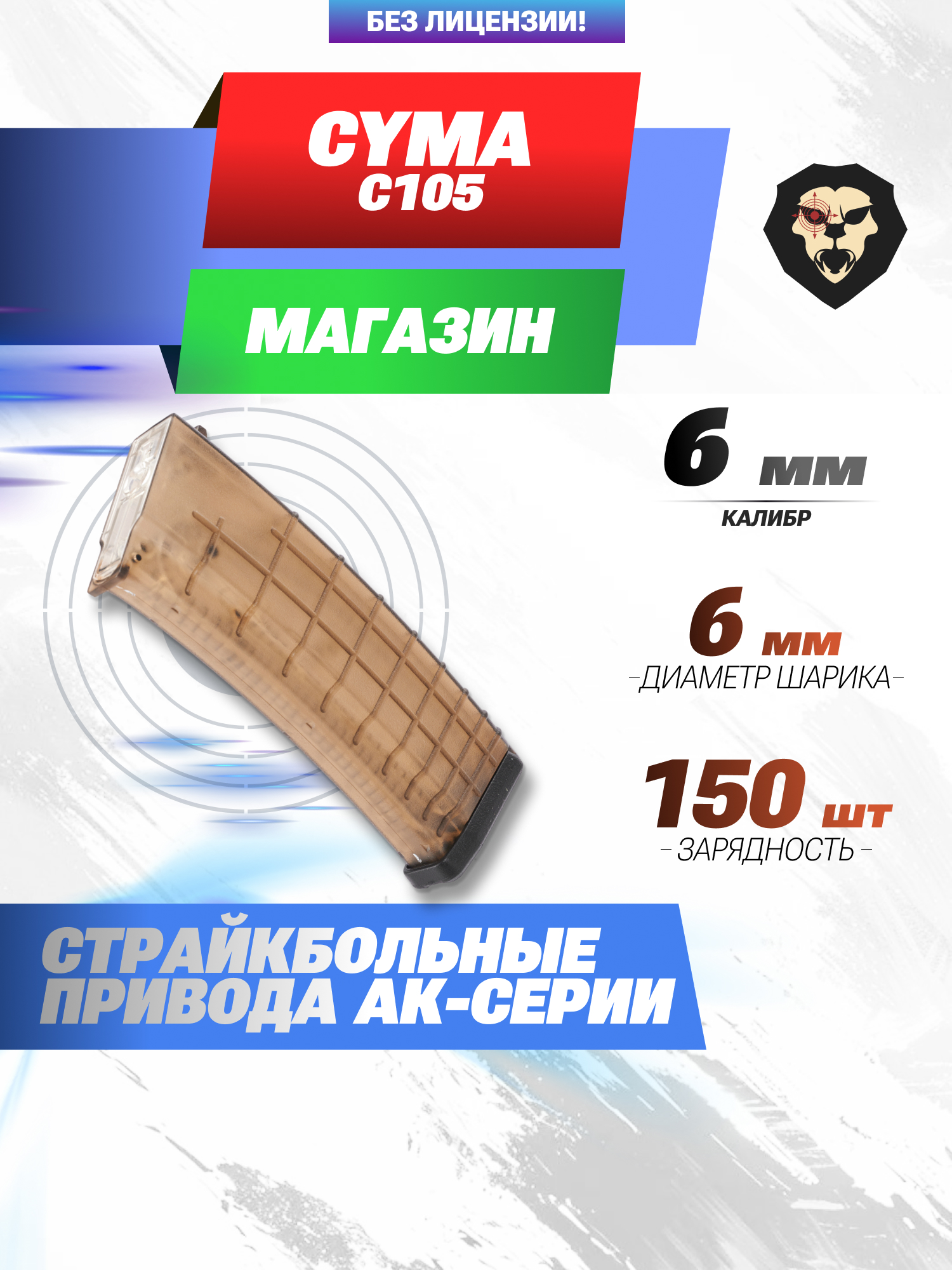 Артикул производителя С.105 631997410 Магазин механический Cyma C105 (150 шаров, АК-серия, Болгария) по низкой цене 1490 руб. Модель со штрихкодом производителя Вы можете оплатить наложенным платежем с доставкой или в отделении транспортной компании (ПЭК, СДЭК, Boxberry). Ваш заказ со штрихкодом 2000000117843 забрать на почте с оплатой при получении в любой части Российской Федерации.