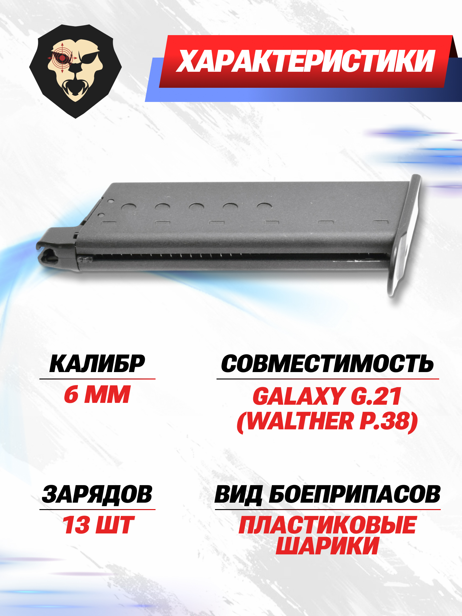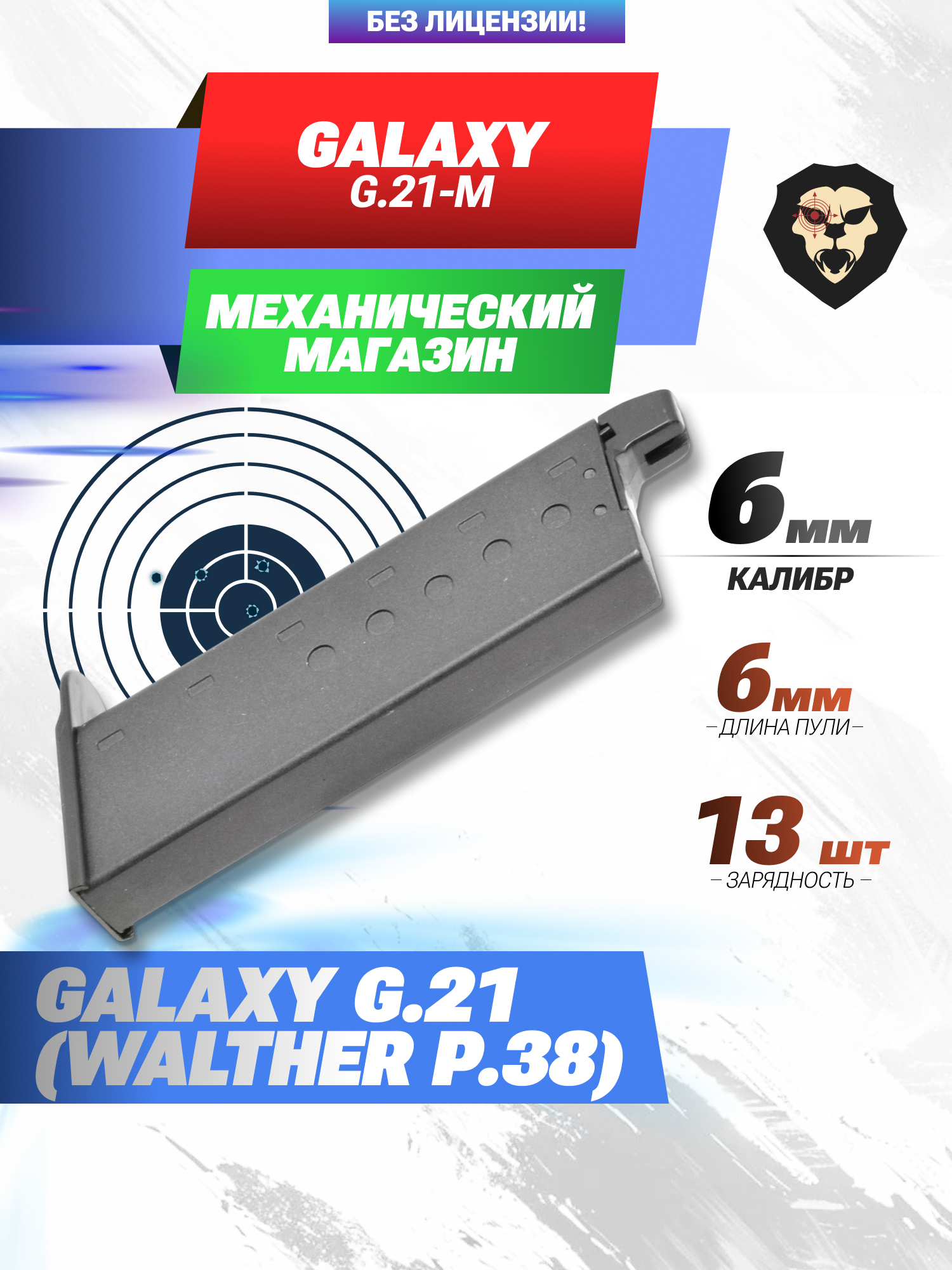 | Совместимость | Страйкбольный пистолет Galaxy G.21 (Walther P.38) |
