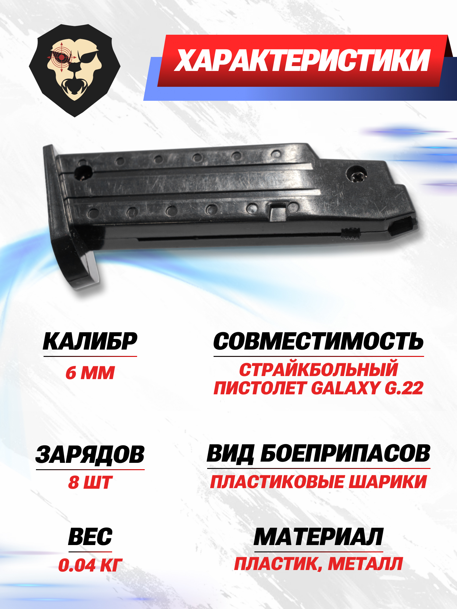 | Совместимость | Страйкбольный пистолет Galaxy G.22 |