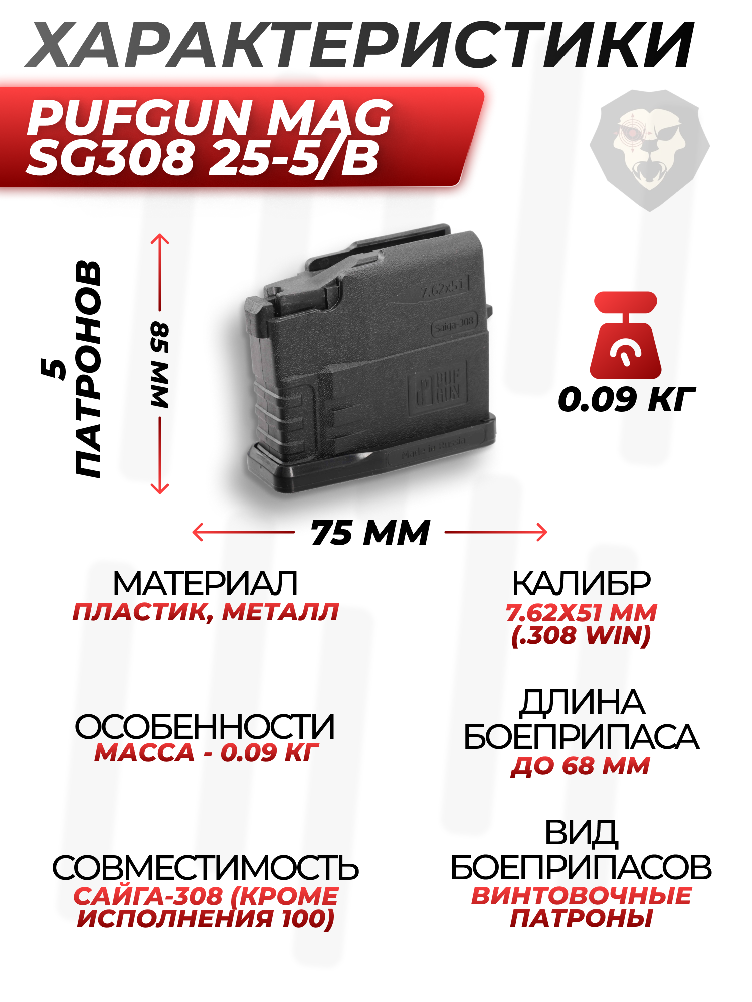 Магазин PufGun Mag Sg308 25-5/B (Сайга-308, 5 патронов, 7.62х51 мм, черный) купить в интернет-магазине Popadiv10.