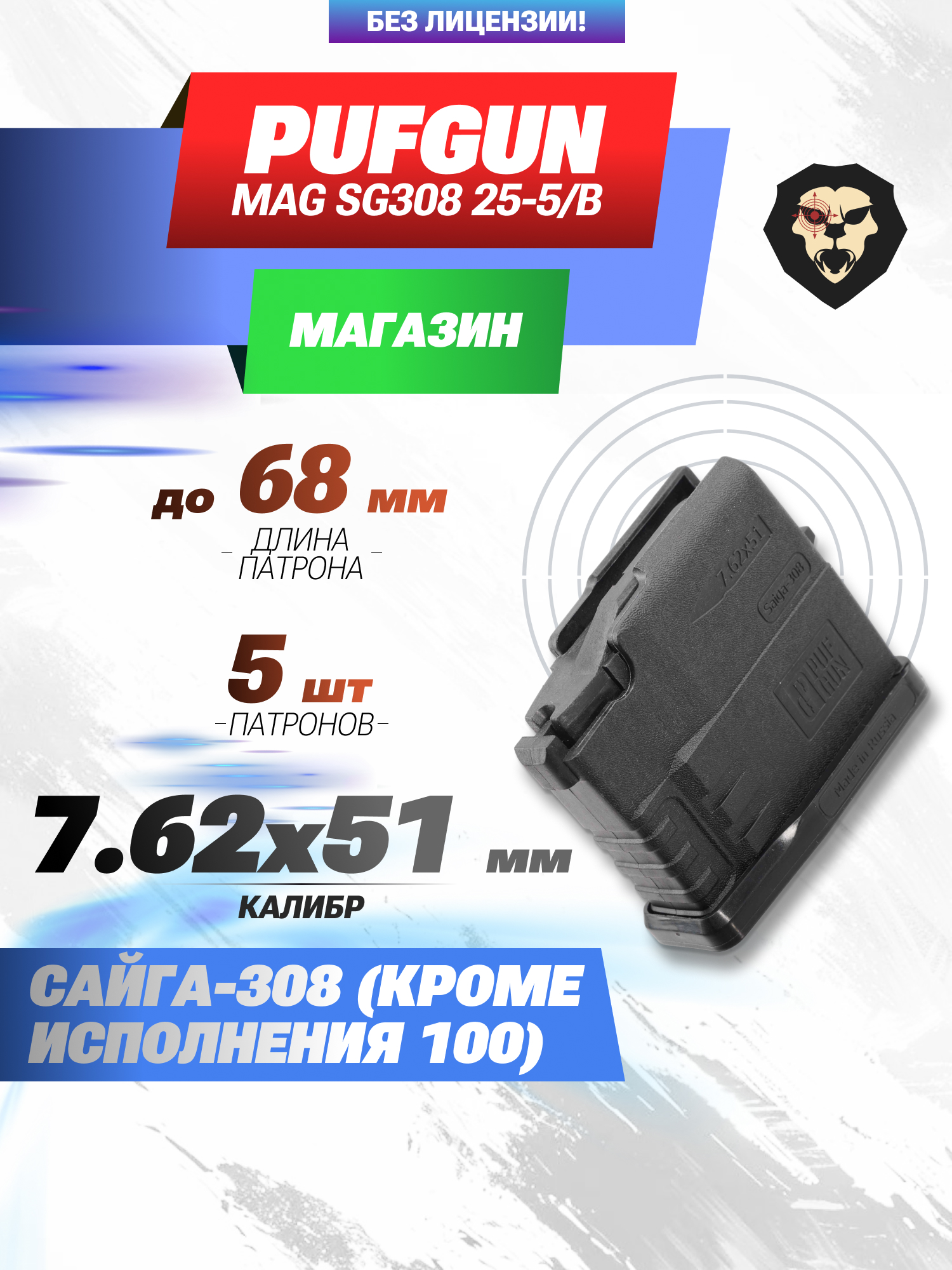 Магазин PufGun Mag Sg308 25-5/B (Сайга-308, 5 патронов, 7.62х51 мм, черный) купить в интернет-магазине Popadiv10.