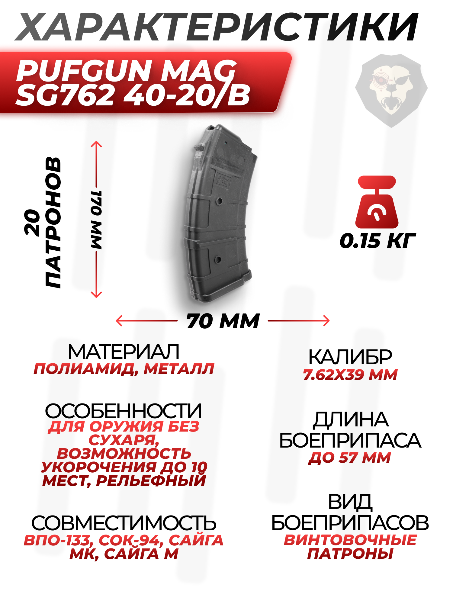 Магазин PufGun Mag Sg762 40-20/B (20 патронов, Вепрь-К, Сайга МК и М, черный) купить в интернет-магазине Popadiv10.