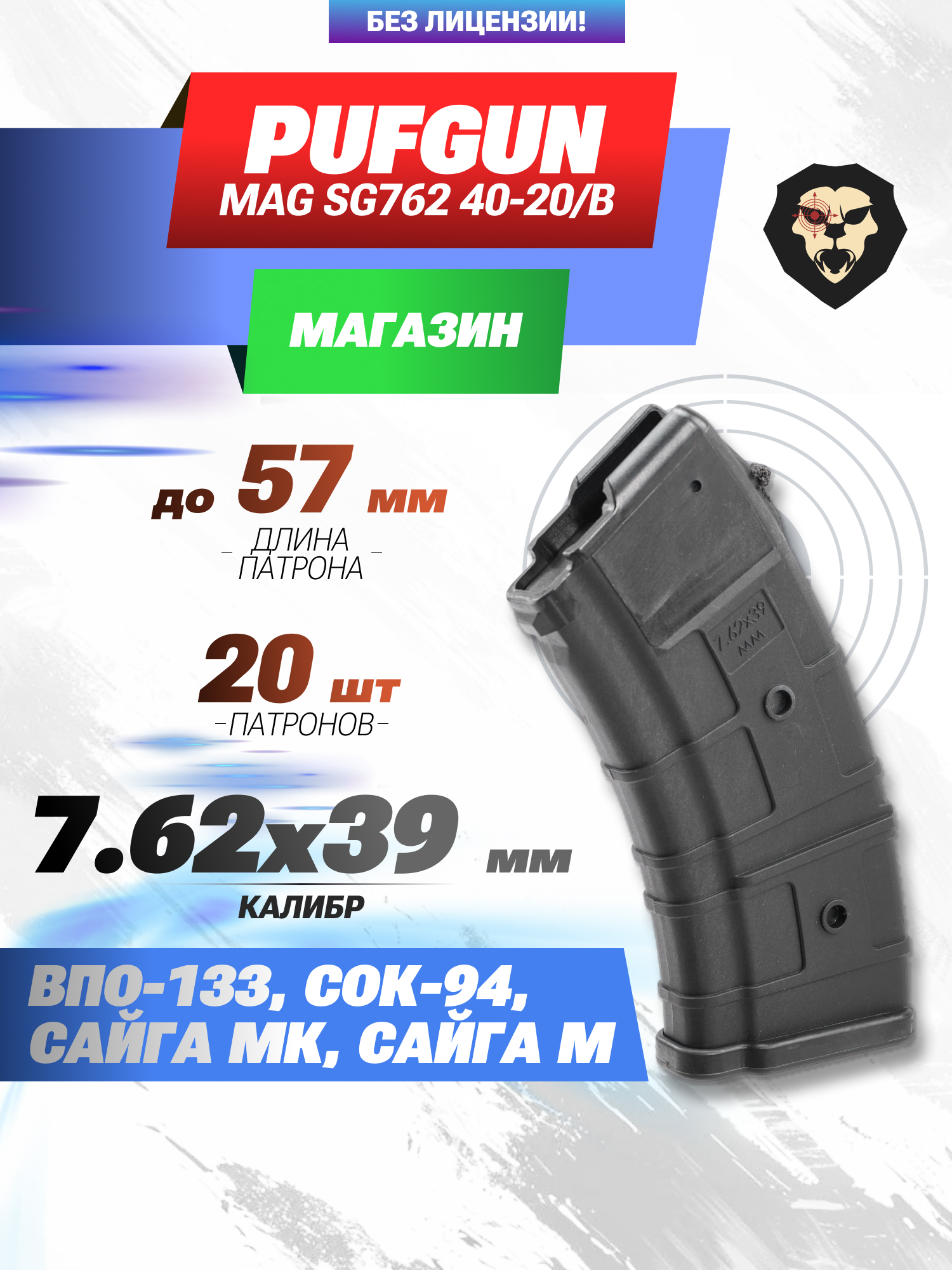 Информация о товаре "Магазин PufGun Mag Sg762 40-20/B (20 патронов, Вепрь-К, Сайга МК и М, черный)" носит ознакомительный характер, и не является публичной офертой, определяемой положениями Статьи 437 Гражданского кодекса Российской Федерации, характеристики, внешний вид, цвет и комплектация могут быть изменены производителем без уведомления.