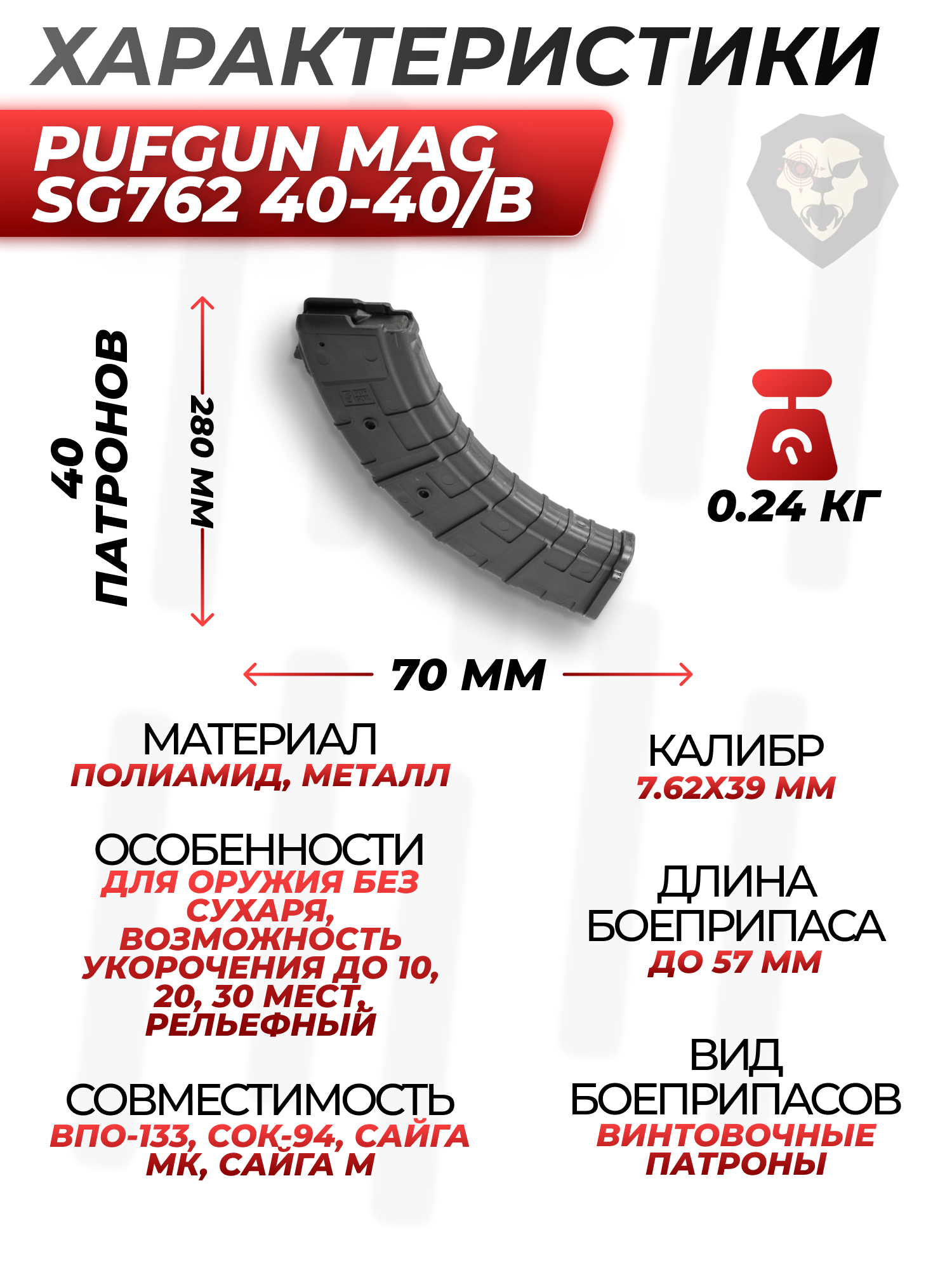 Магазин PufGun Mag Sg762 40-40/B (40 патронов, Вепрь-К, Сайга МК и М, черный) купить в интернет-магазине Popadiv10.