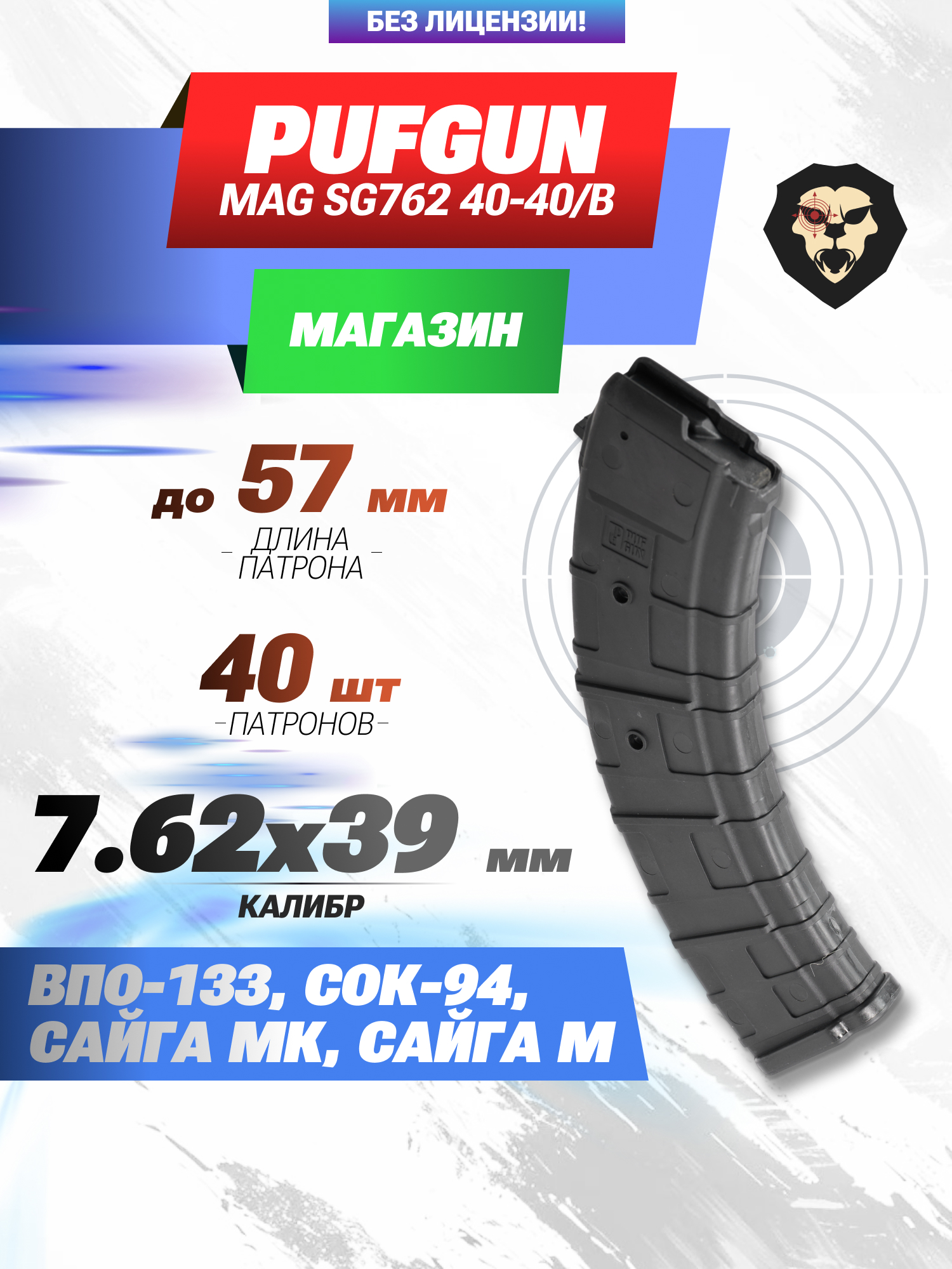 Информация о товаре "Магазин PufGun Mag Sg762 40-40/B (40 патронов, Вепрь-К, Сайга МК и М, черный)" носит ознакомительный характер, и не является публичной офертой, определяемой положениями Статьи 437 Гражданского кодекса Российской Федерации, характеристики, внешний вид, цвет и комплектация могут быть изменены производителем без уведомления.