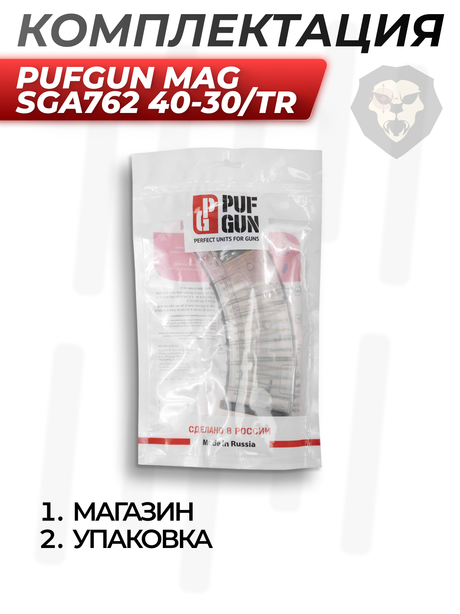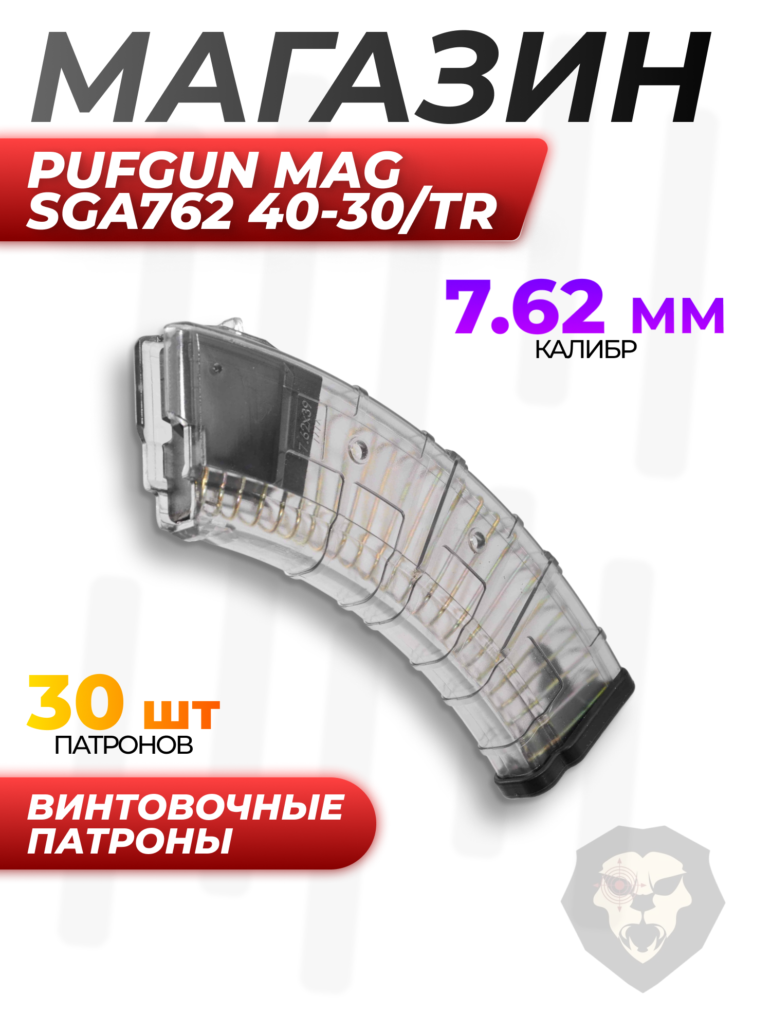 Магазин PufGun Mag SGA762 40-30/Tr (30 патронов, 7.62х39, АК, с сухарем, прозрачный) купить в интернет-магазине Popadiv10.