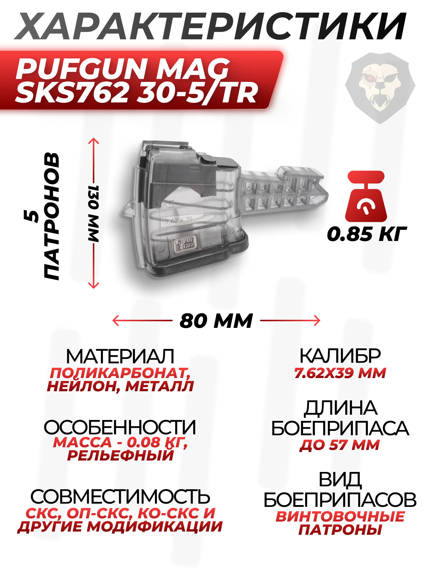 Магазин PufGun Mag SKS762 30-5/Tr (СКС, 5 патронов, 7.62х39 мм, прозрачный) купить в интернет-магазине Popadiv10.