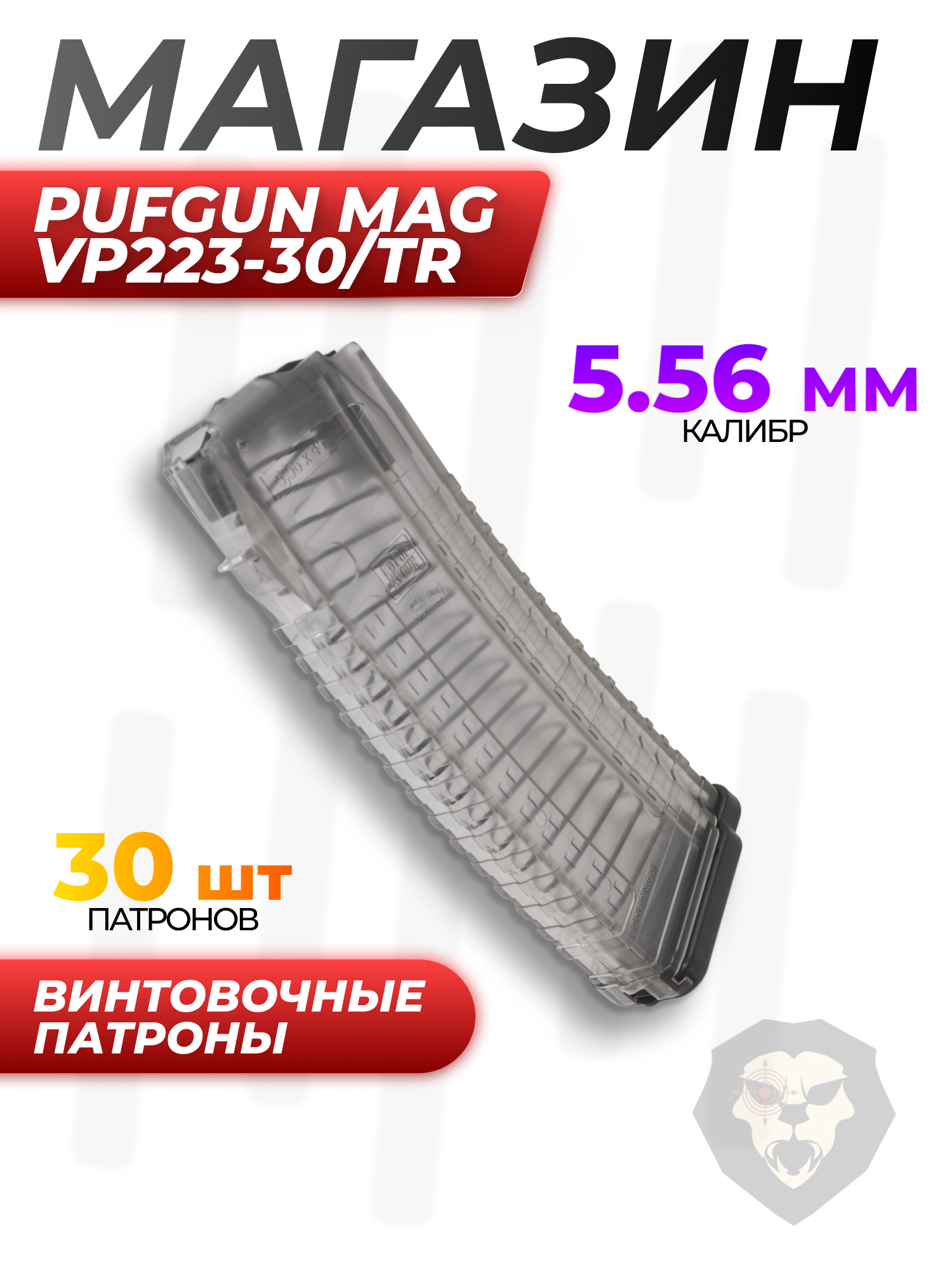 Магазин PufGun Mag Vp223-30/Tr (ВПО-155, 30 патронов, 5.56x45 мм, прозрачный) купить в интернет-магазине Popadiv10.