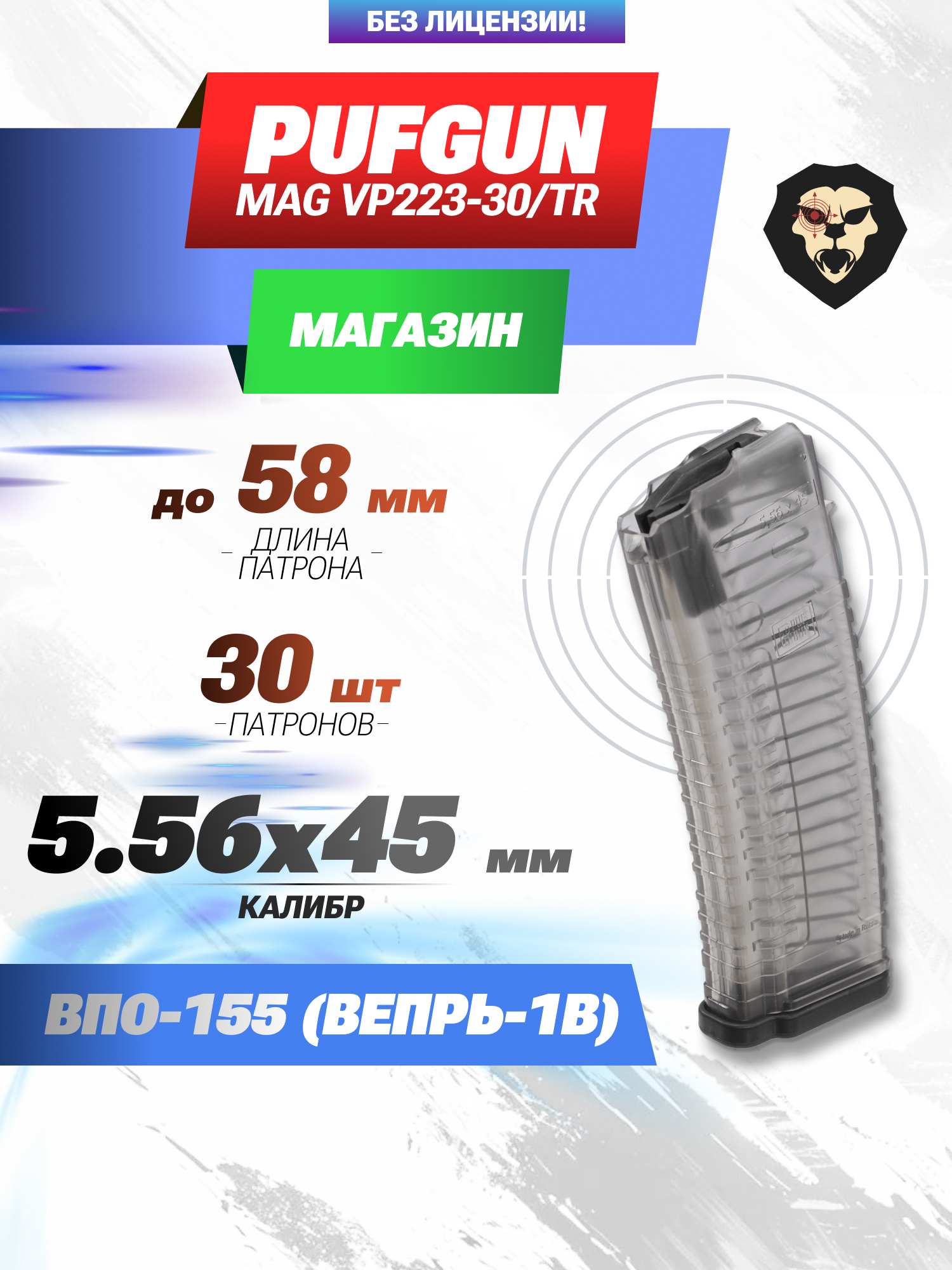 Информация о товаре "Магазин PufGun Mag Vp223-30/Tr (ВПО-155, 30 патронов, 5.56x45 мм, прозрачный)" носит ознакомительный характер, и не является публичной офертой, определяемой положениями Статьи 437 Гражданского кодекса Российской Федерации, характеристики, внешний вид, цвет и комплектация могут быть изменены производителем без уведомления.