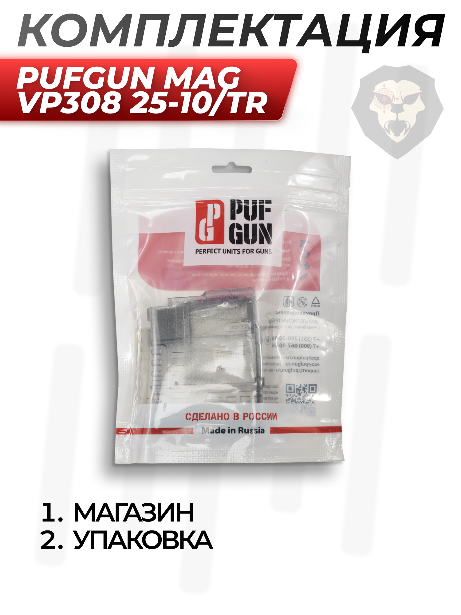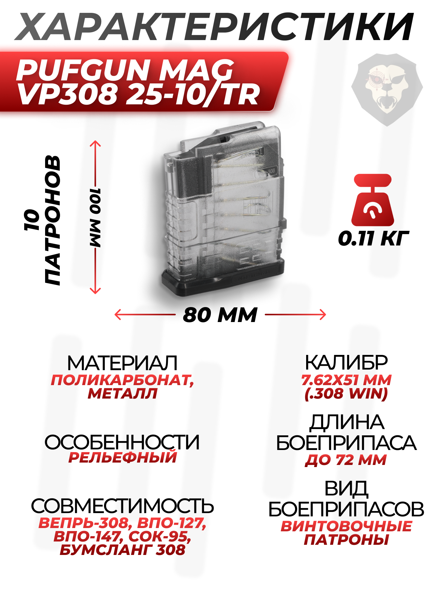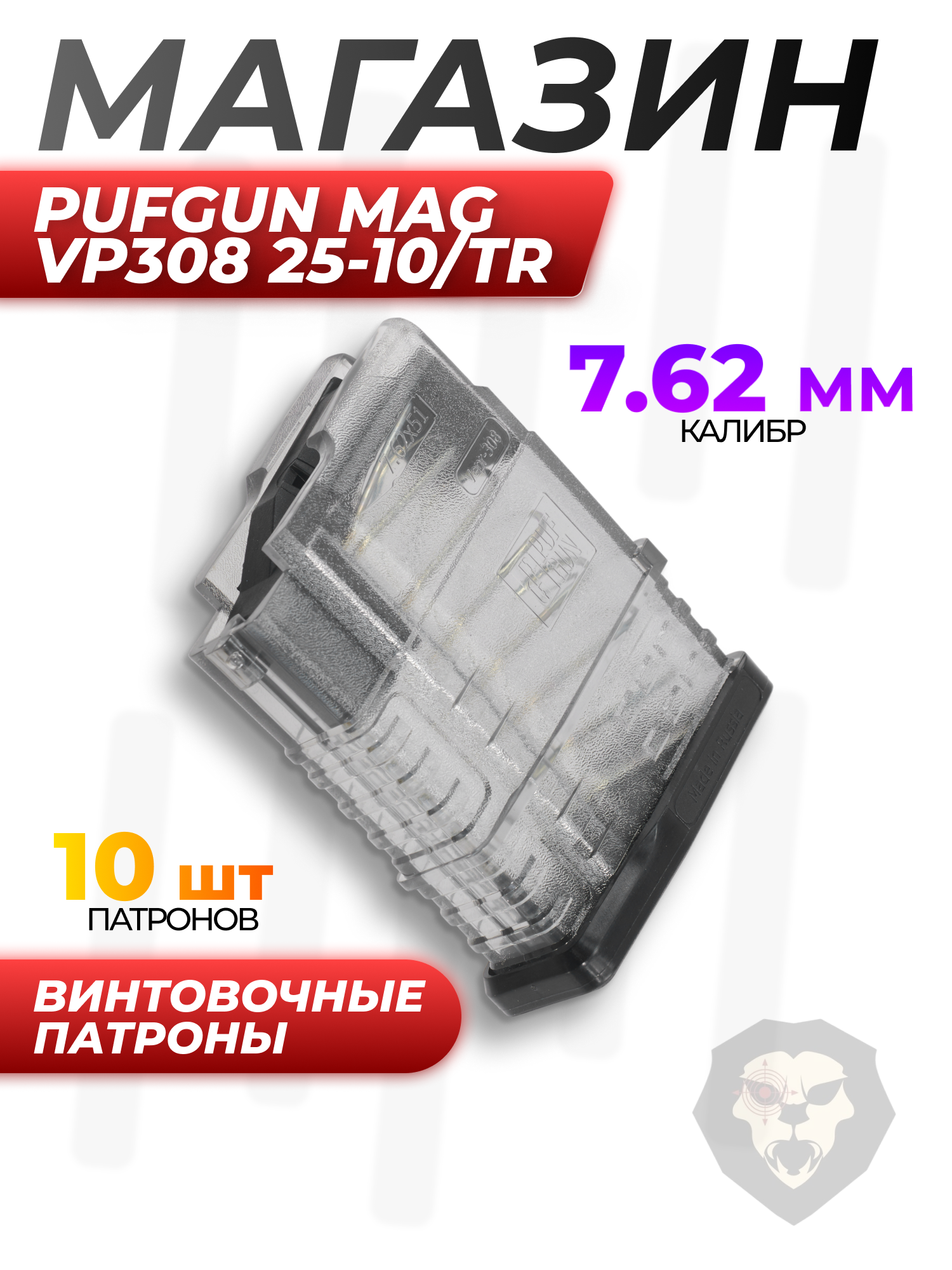 Магазин PufGun Mag Vp308 25-10/Tr (Вепрь-308, 10 патронов, 7.62х51 мм, прозрачный) купить в интернет-магазине Popadiv10.