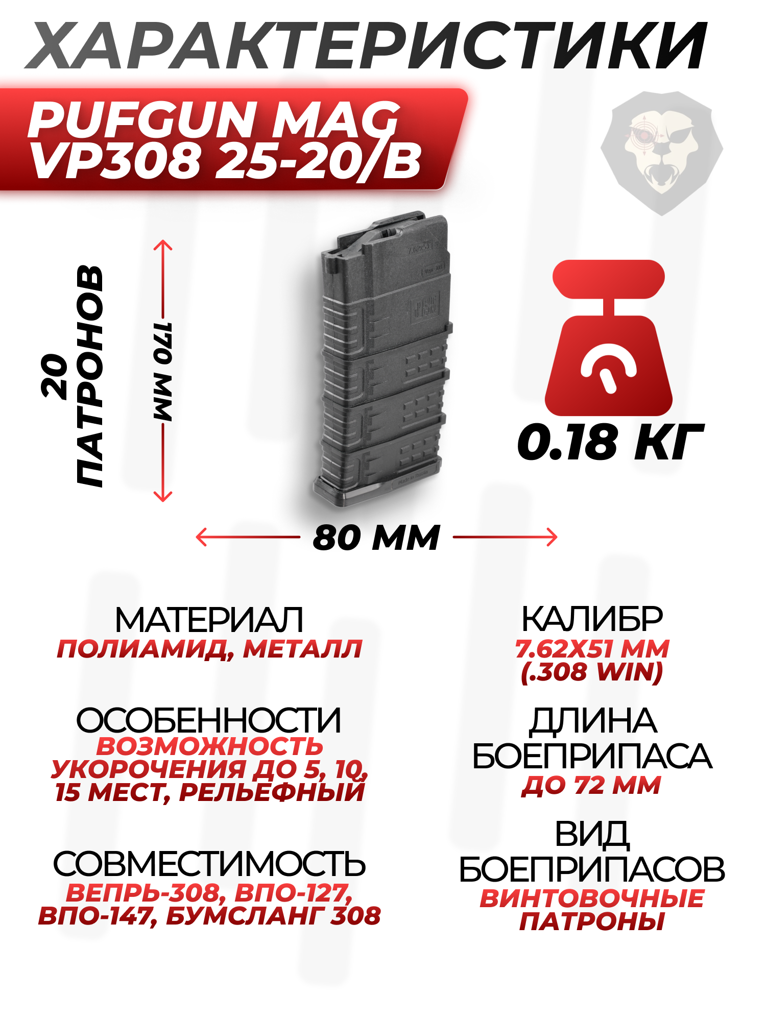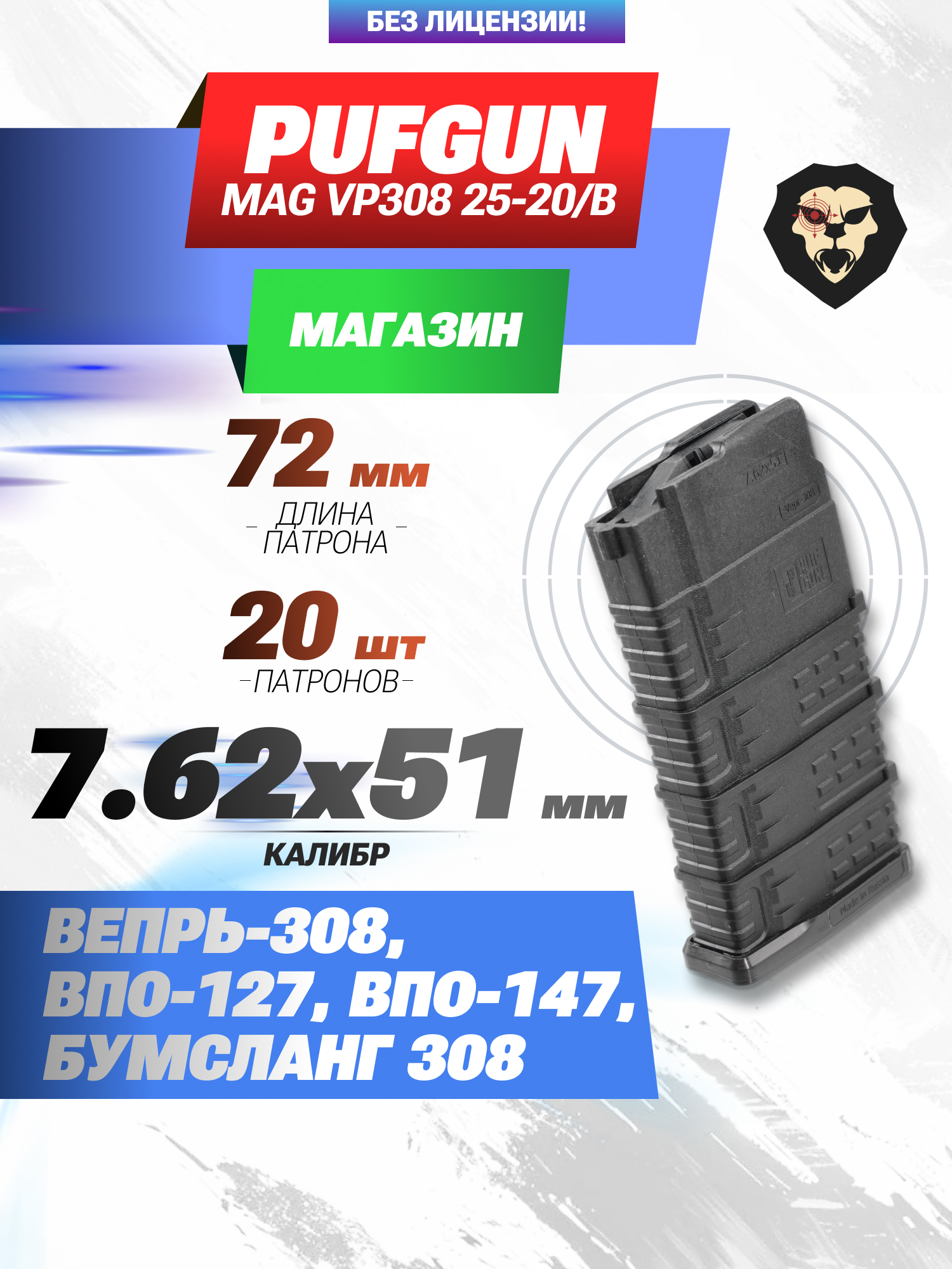 Магазин PufGun Mag Vp308 25-20/B (Вепрь-308, 20 патронов, 7.62х51 мм, черный) купить в интернет-магазине Popadiv10.