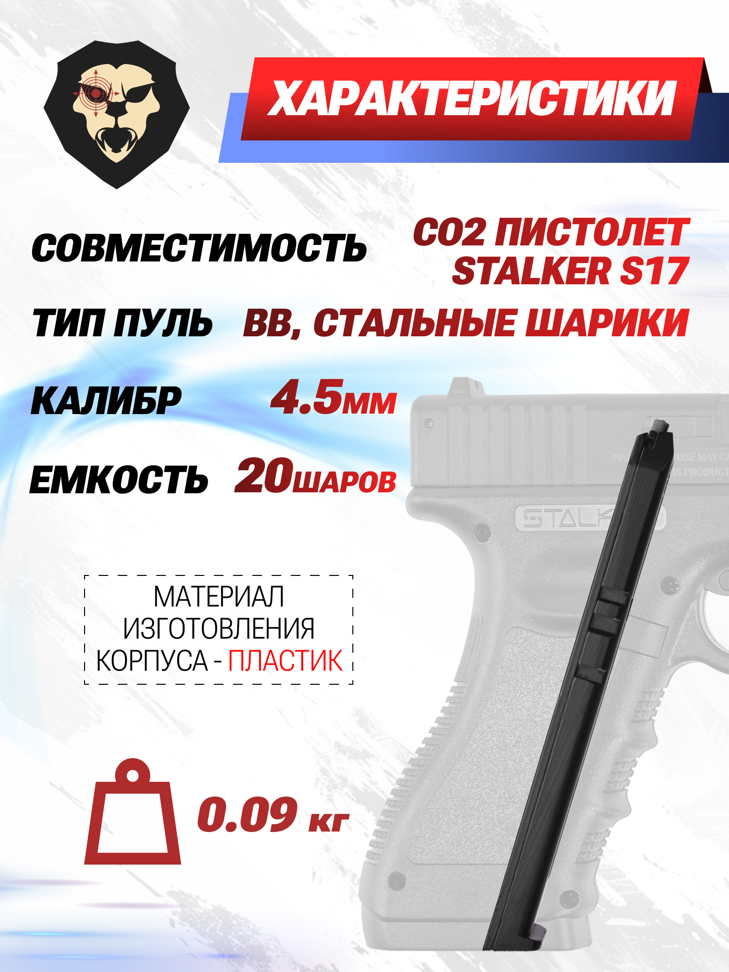 | Совместимость | Пневматический пистолет Stalker S17 |