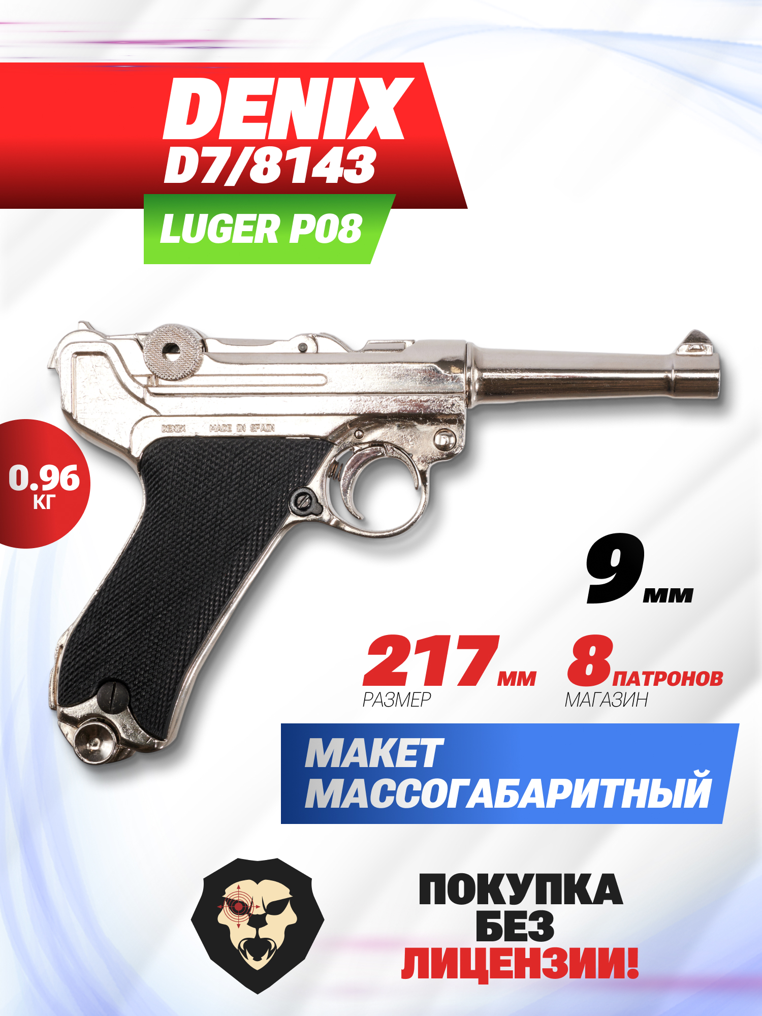 Макет пистолета Denix D7/8143 Luger P08 (ММГ, Германия, 1898 г, никель) купить в интернет-магазине Popadiv10.