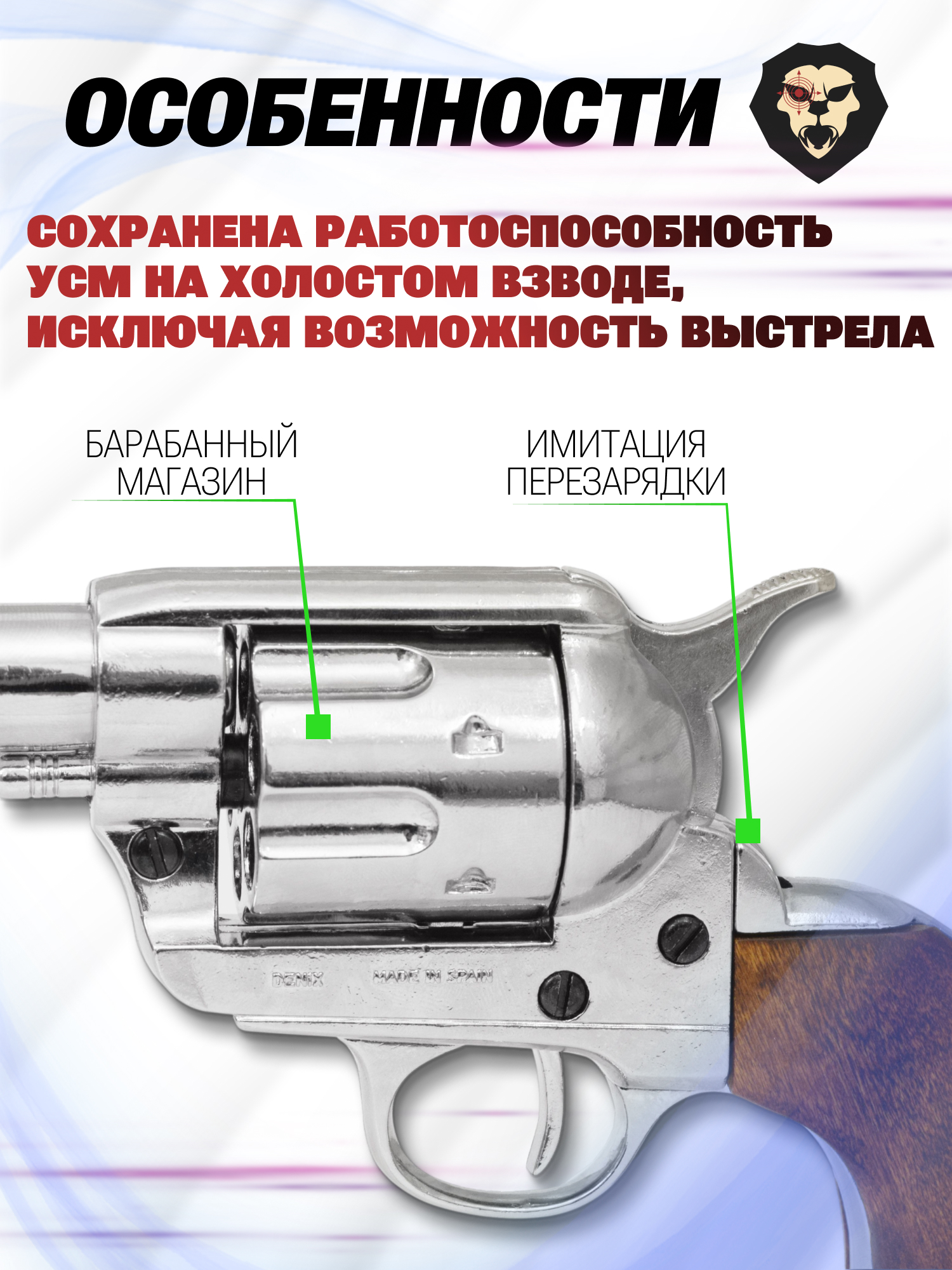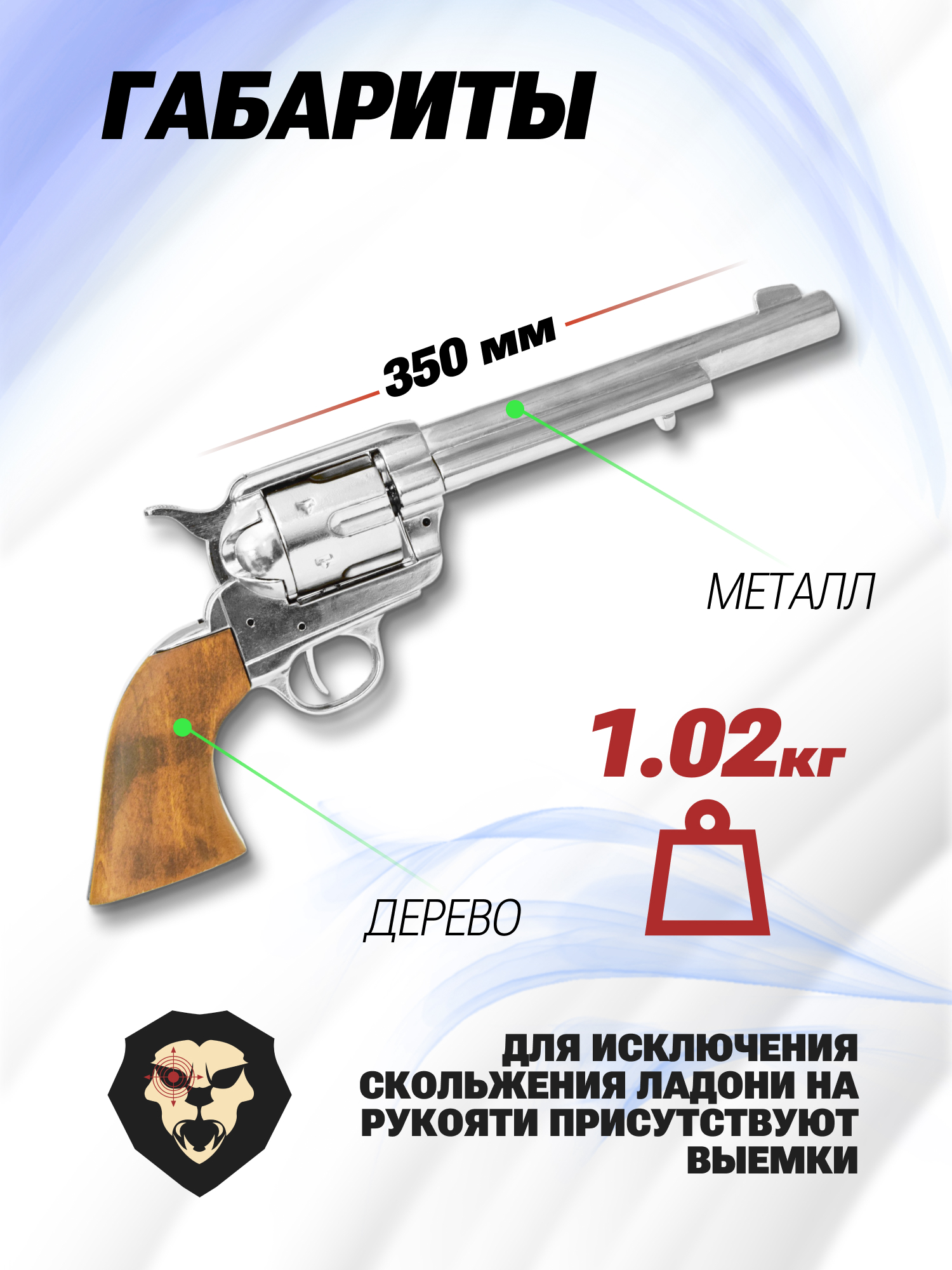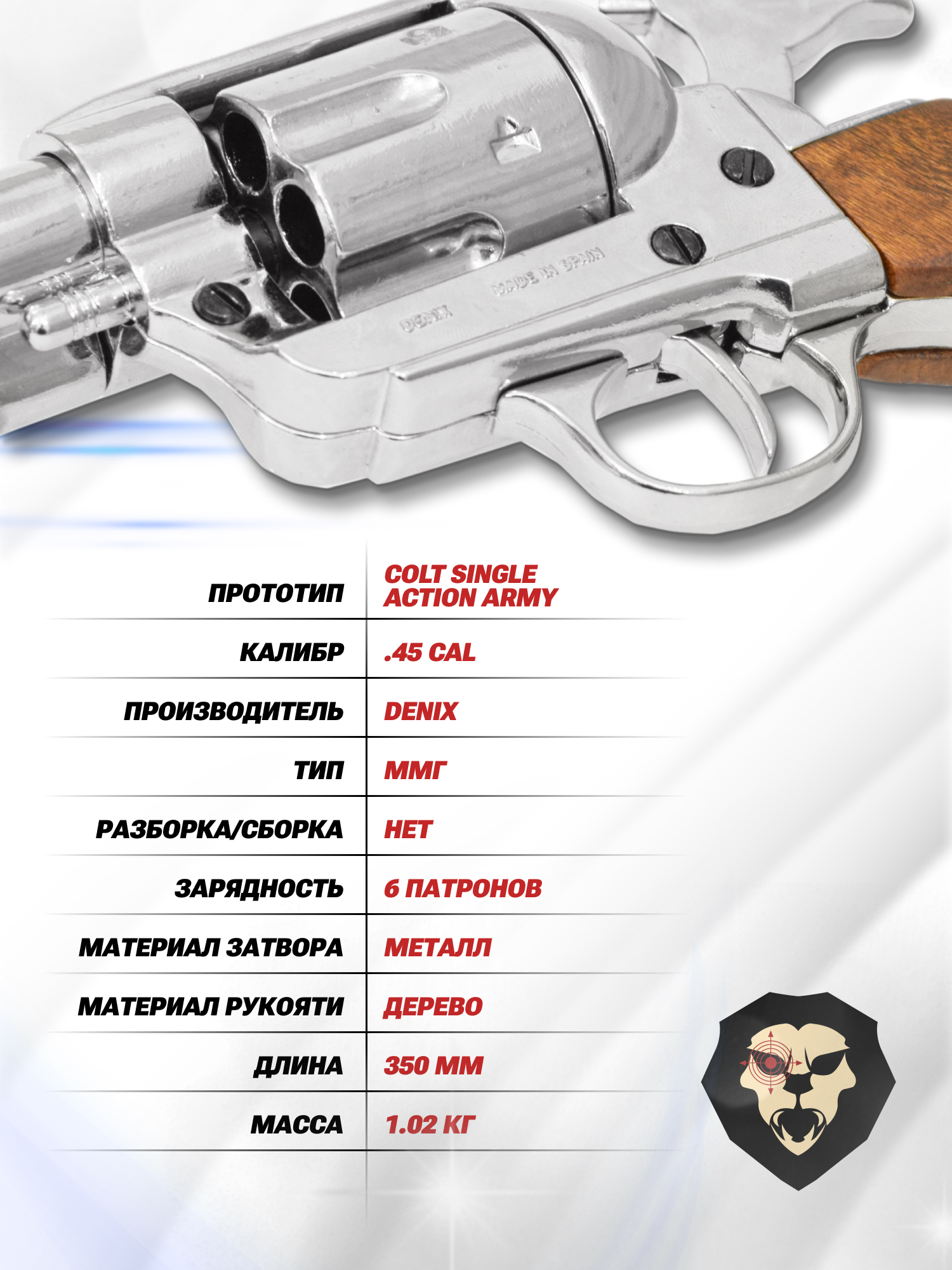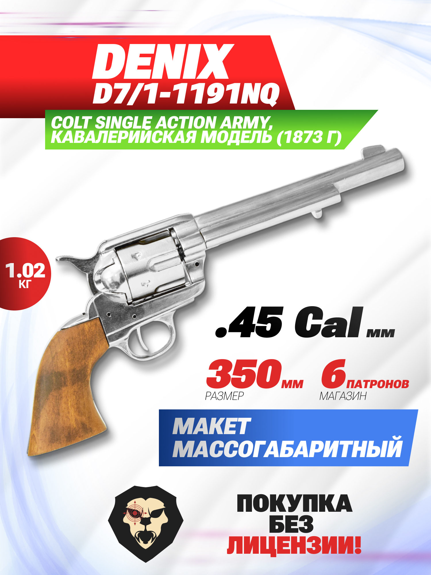 Макет револьвера Denix Colt Peacemaker .45 (D7/1-1191NQ, 7.5 дюймов, 1873 г, дерево, никель) купить в интернет-магазине Popadiv10.