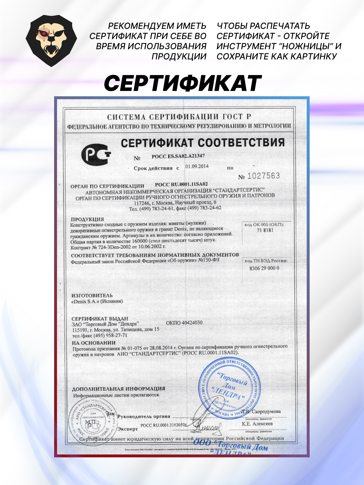 В качестве решения возникающих сложностей подойдут всевозможные массогабаритные макеты огнестрельного оружия, детально повторяющие конструкцию своих огнестрельных прототипов, однако продаются свободно за счет отсутствия возможности произвести выстрел боевым патроном. На изготовлении такой продукции специализируется компания из Испании Denix, представившая обозреваемый револьвер D7 1-1191NQ, выполненный по образу классического американского Кольта «Миротворец».