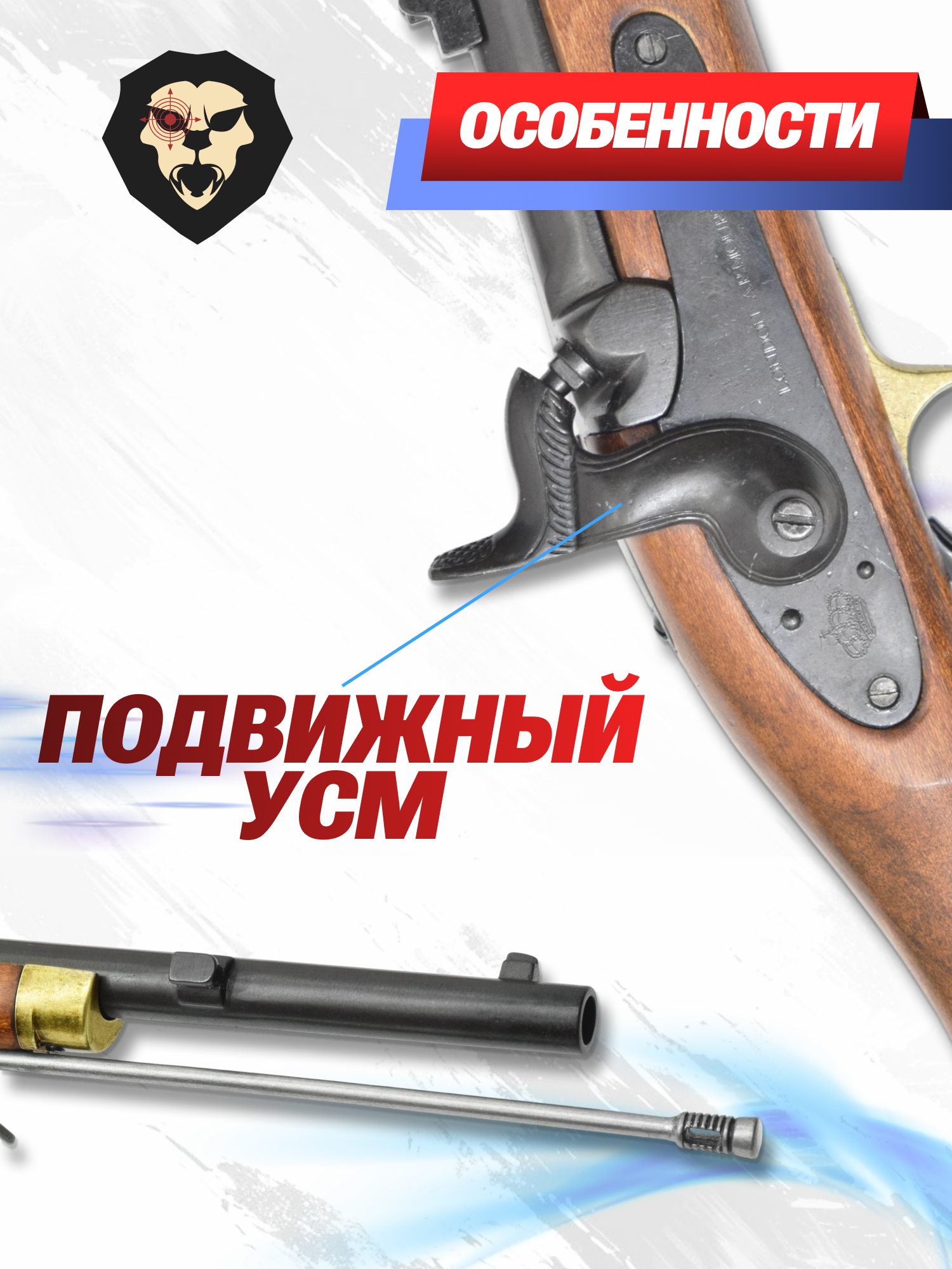 | Особенности | Подвижный спусковой механизм, шомпол |