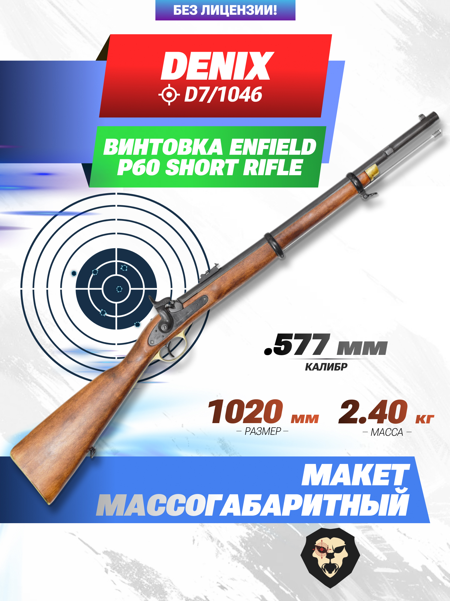 Информация о товаре "Макет ружья Denix Enfield P60 (Англия, 1860 г, D7/1046)" носит ознакомительный характер, и не является публичной офертой, определяемой положениями Статьи 437 Гражданского кодекса Российской Федерации, характеристики, внешний вид, цвет и комплектация могут быть изменены производителем без уведомления.