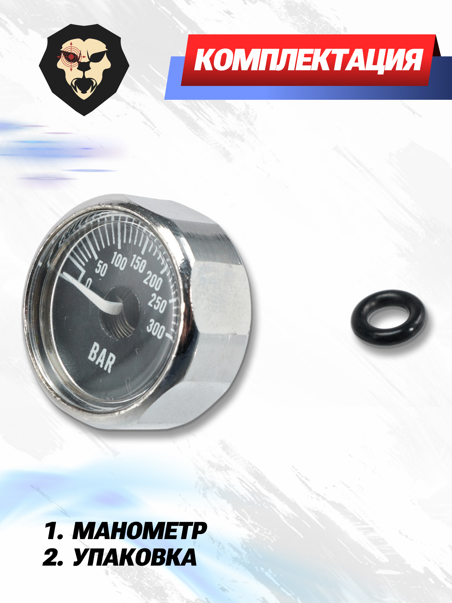 Оружие, использующее воздух высокого давления, нуждается в четком контроле. Манометр Крюгерган ПСП отображает закачку от 0 до 300 Бар.