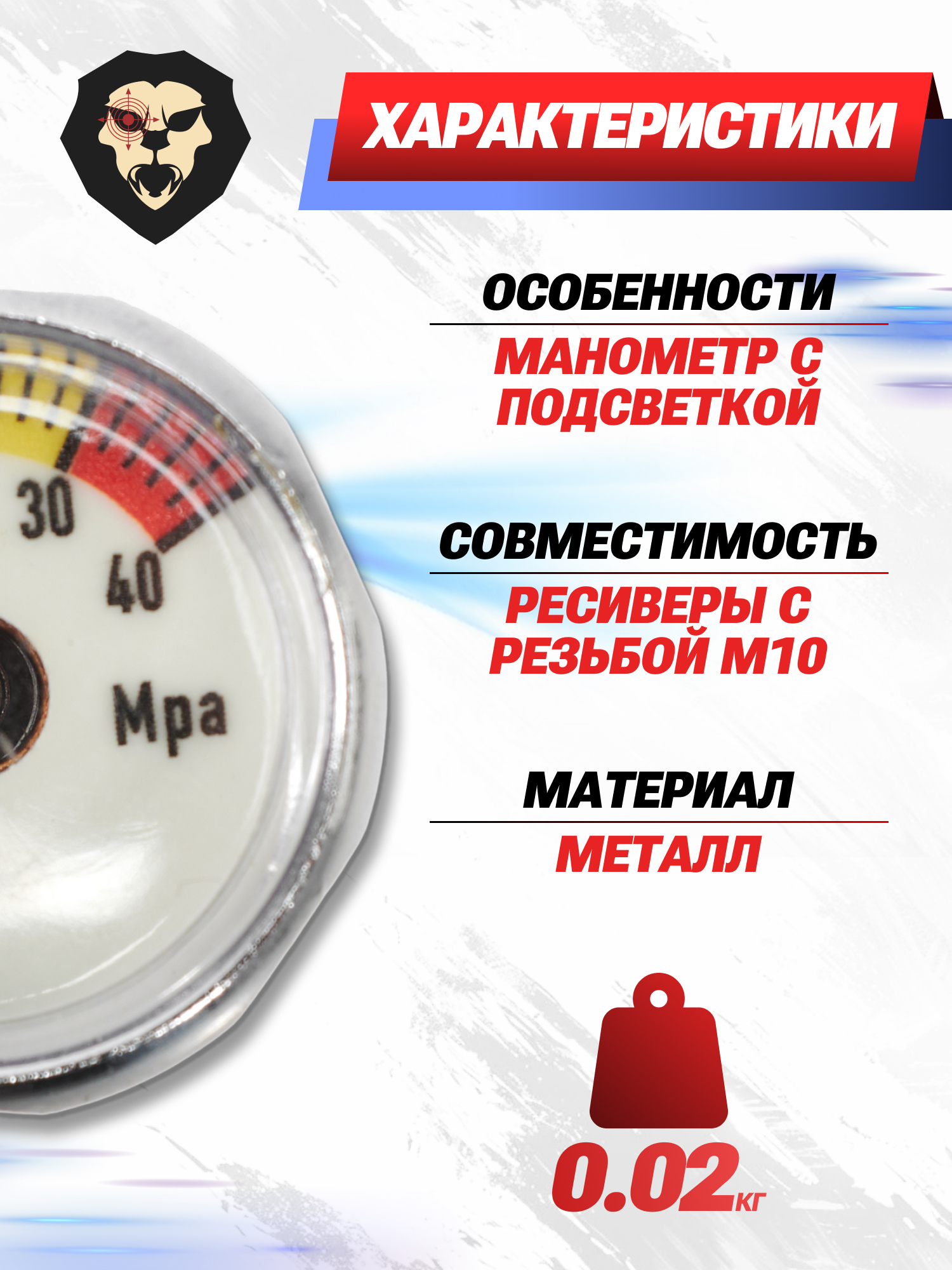 Манометр для измерения давления Патриот оснащается функцией подсветки, что дает отслеживать давление внутри ресивера пневматического оружия даже в темноте.