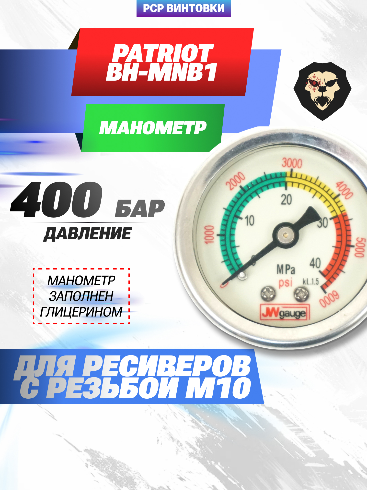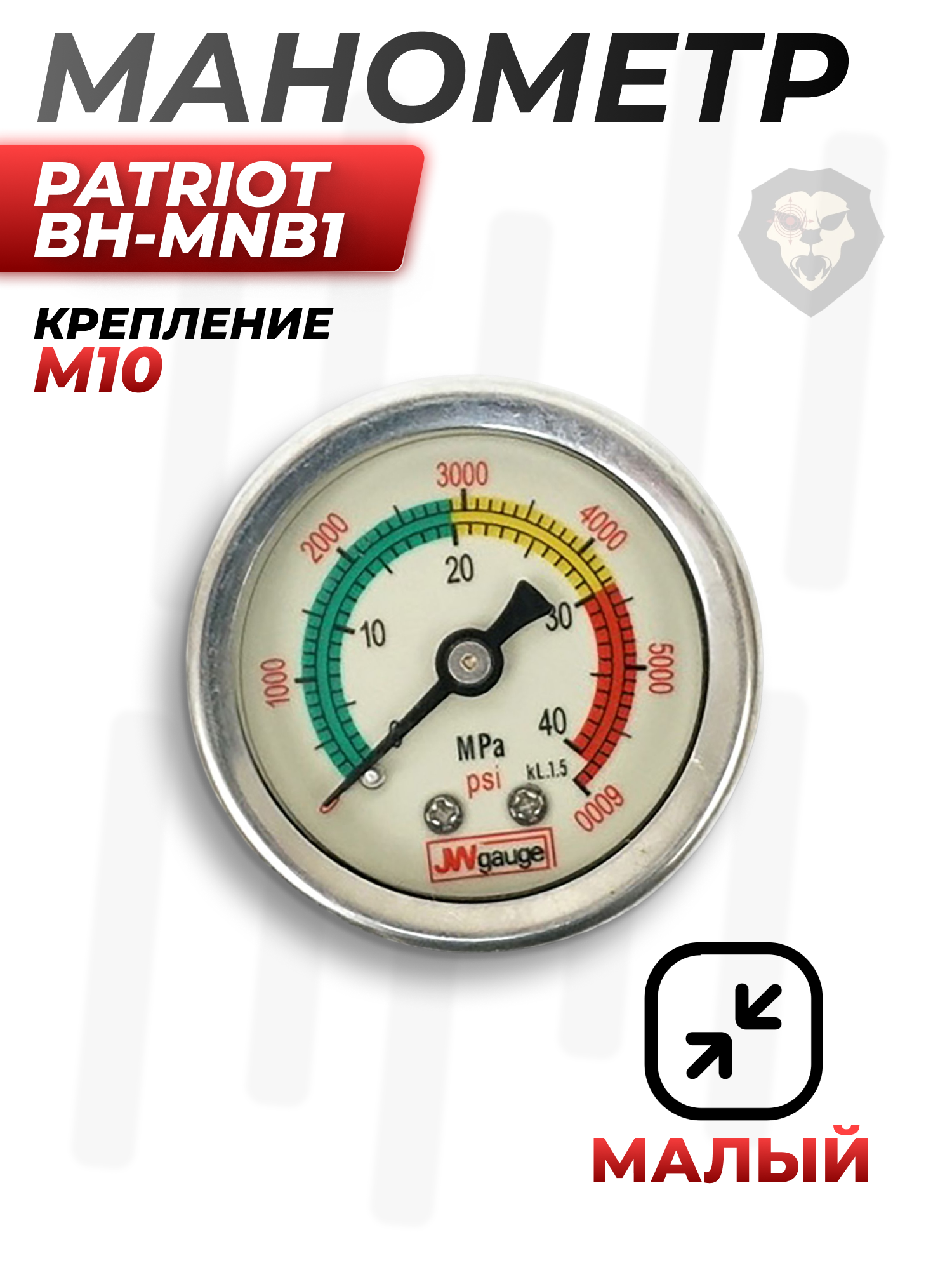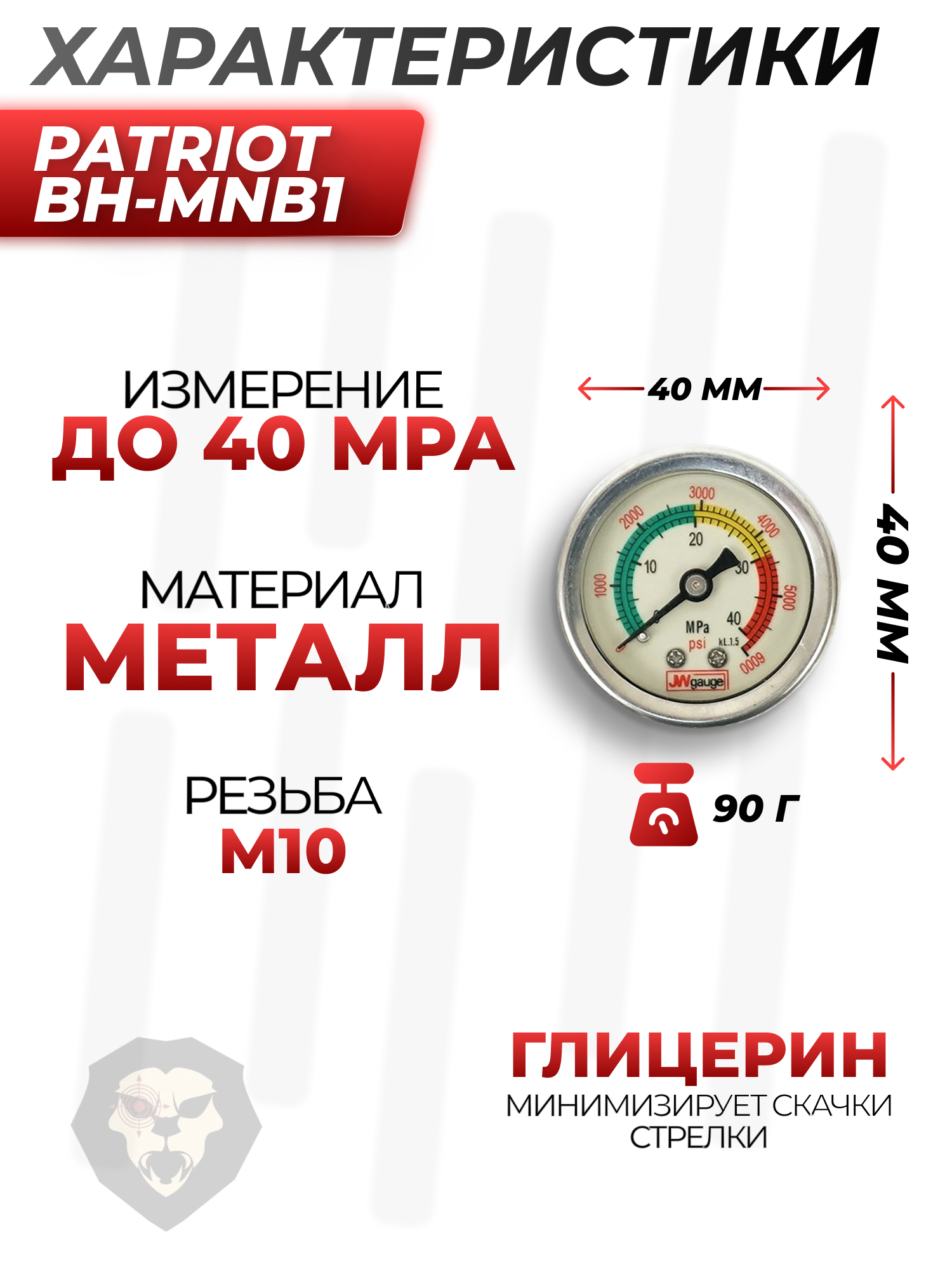 Манометр Patriot BH-MNB1 (Резьба M10, с глицерином, 40 мм) купить в интернет-магазине Popadiv10.
