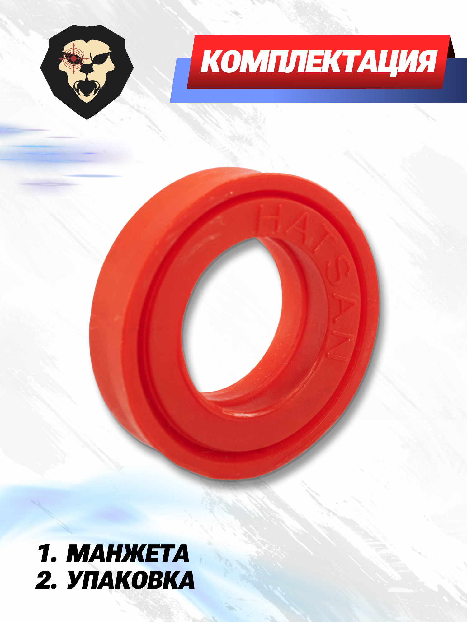 Манжета поршня для Страйкер Хатсан характеризуется толщиной 7 миллиметров, а ее диаметр равен 27 мм. Процедуру монтажа можно провести в специализированной мастерской или в домашних условиях - в последнем случае для разбора пневматики потребуется инструмент и совместимый съемник пружины, приобретаемый отдельно. Обтюрационная шайба изготовлена из полиуретана и выделяется увеличенным рабочим ресурсом за счет свойств материала.