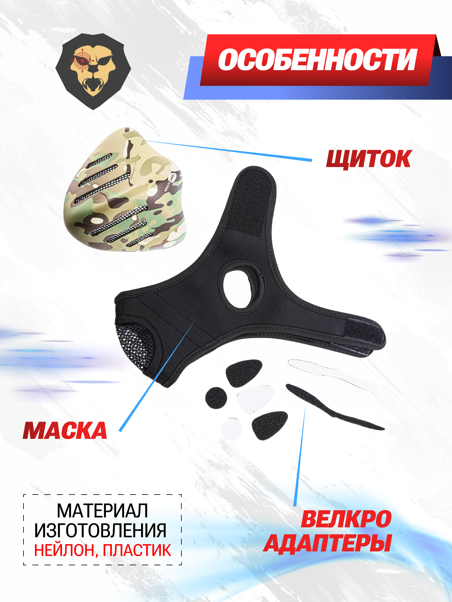 Маска защитная Anbison Sports Honor Knight Half Face (мультикам, AS-MS0108CP) купить в интернет-магазине Popadiv10.